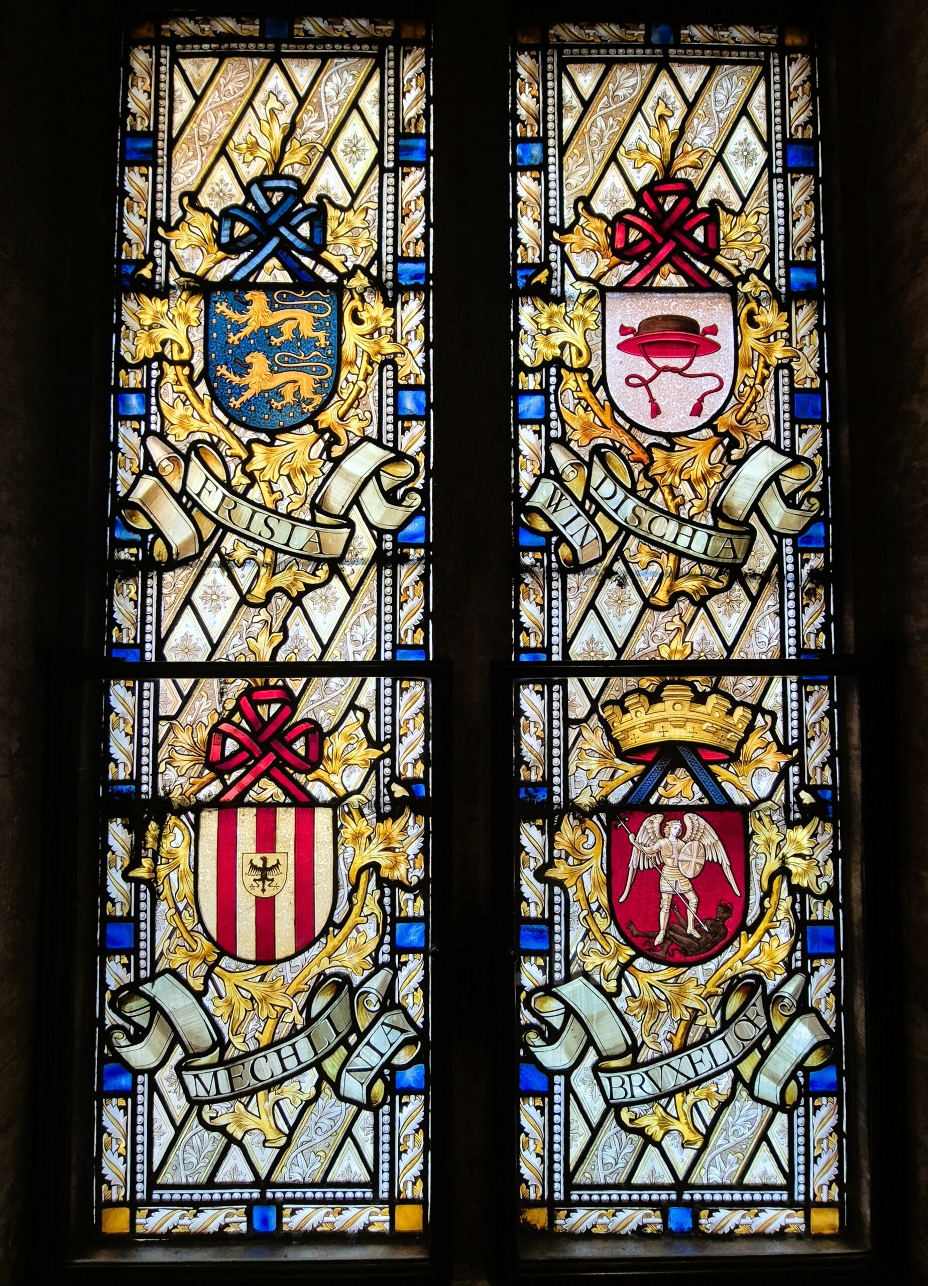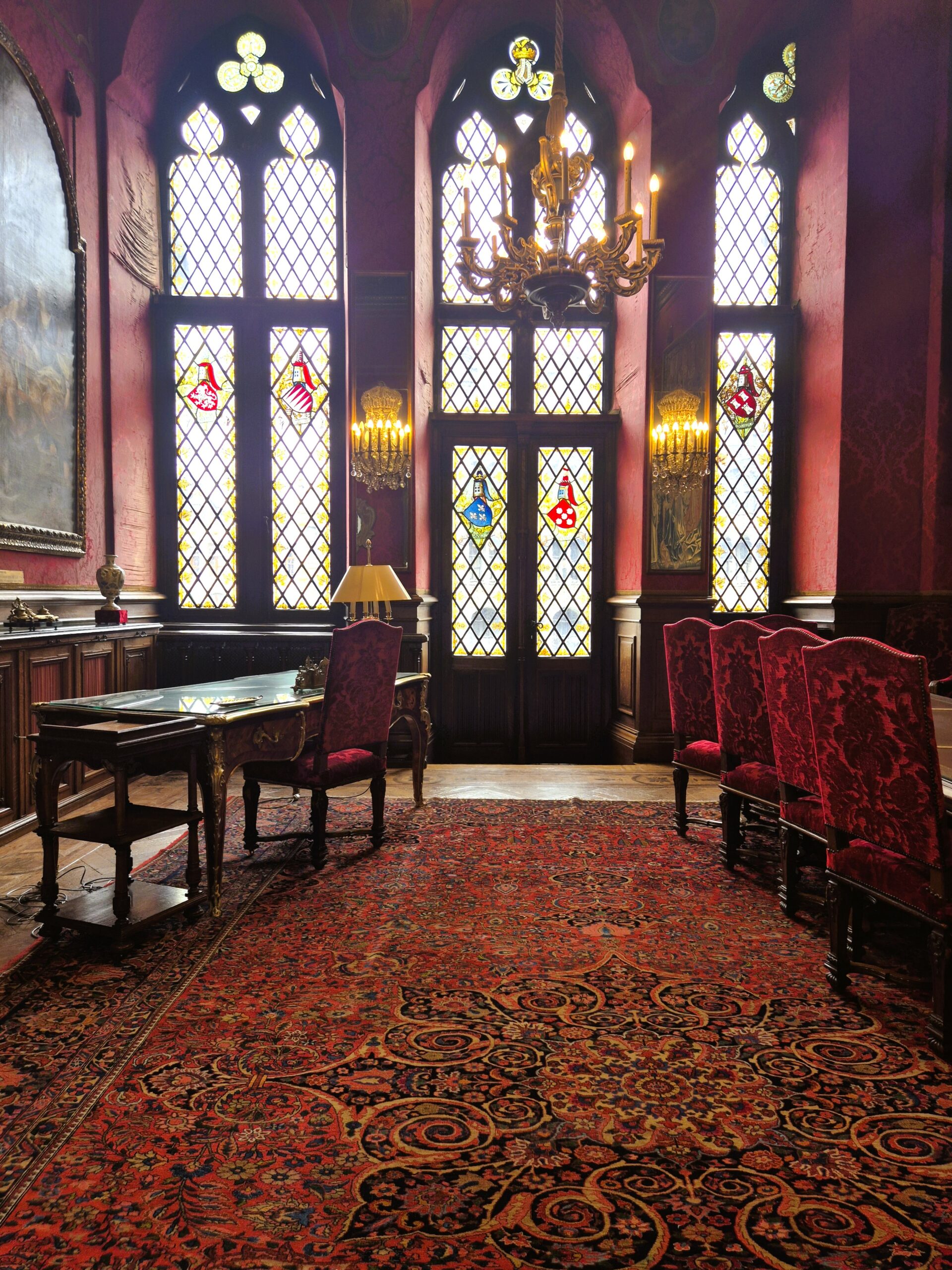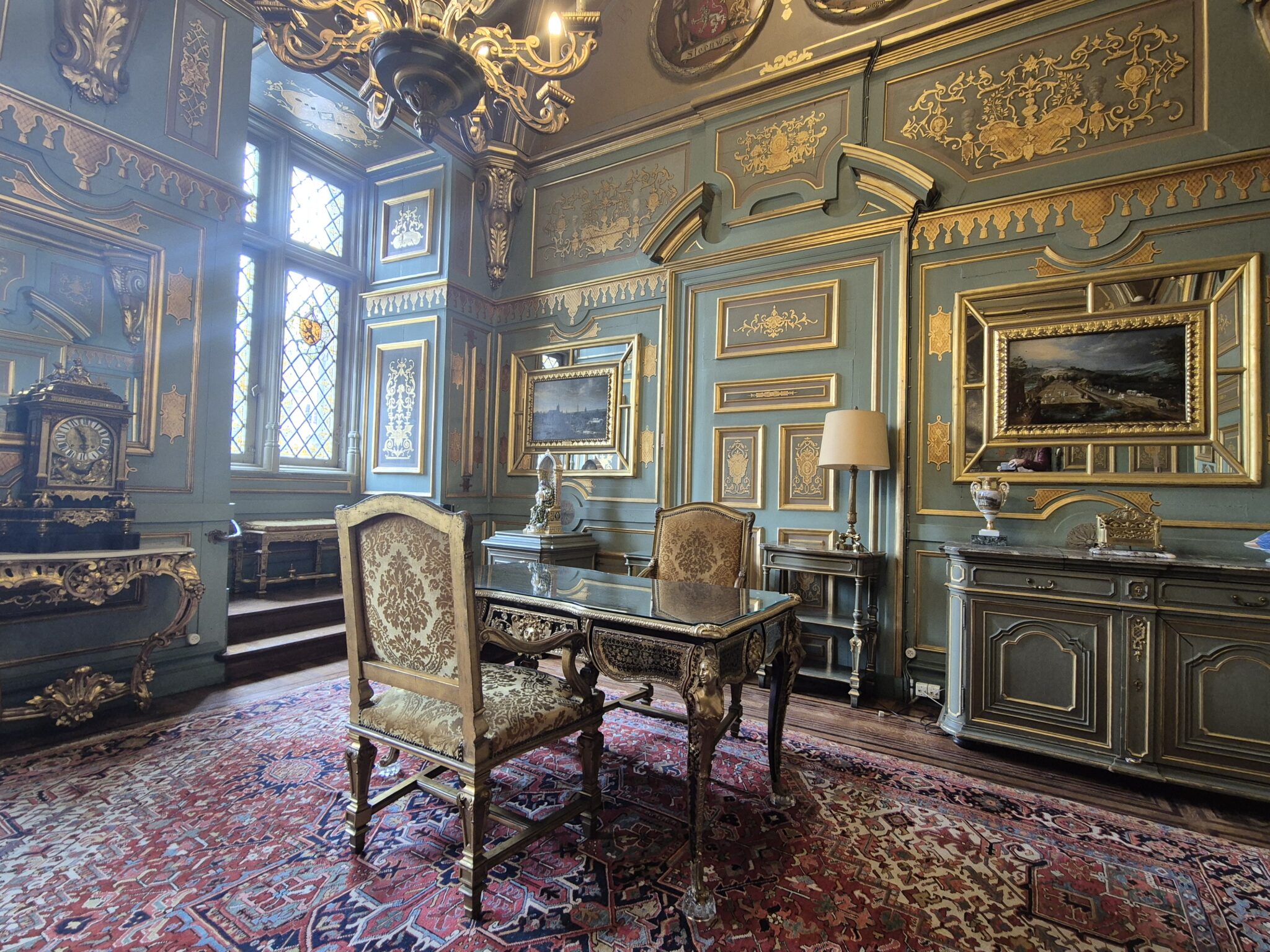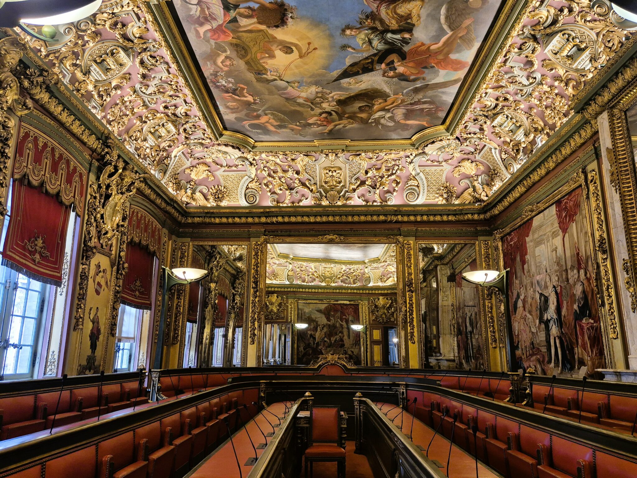 Η Μνημειώδης Σκάλα-Escalier d’Ηonneur, οδηγεί σε μια σειρά από λαμπερές αίθουσες που ζωντανεύουν έξι αιώνες ιστορίας: Στην Maximilian, τη μεγάλη τραπεζαρία περιβάλλουν ιστορικές ταπισερί, εξαίρετα δείγματα υφαντουργίας του 16ου, 17ου και 18ου αιώνα, ενώ η Αναγεννησιακή αποπνέει δραματική ένταση και πολυτέλεια με τα περίτεχνα ξυλόγλυπτα και τα πορφυρά χρώματα. Κι ενώ στη Γοτθική Αίθουσα-Salle Gothique που χρησιμοποιείται για τις επίσημες δεξιώσεις θα θαυμάσετε τα οικόσημα των παλιών συντεχνιών, στη Galerie Grangé δεσπόζουν τα πορτρέτα των ηγεμόνων που κυβέρνησαν το Δουκάτο της Βραβάντης και οι μαρμάρινες προτομές βασιλέων. Η νεογοτθική Αίθουσα Γάμων -αλλοτινή αίθουσα δικαστηρίου- θα σας αφήσει άφωνους, αλλά αναμφίβολα αποκορύφωμα πολυτέλειας αποτελεί η Αίθουσα του Συμβουλίου με την πλούσια διακόσμηση που πλαισιώνει την εντυπωσιακή οροφογραφία.