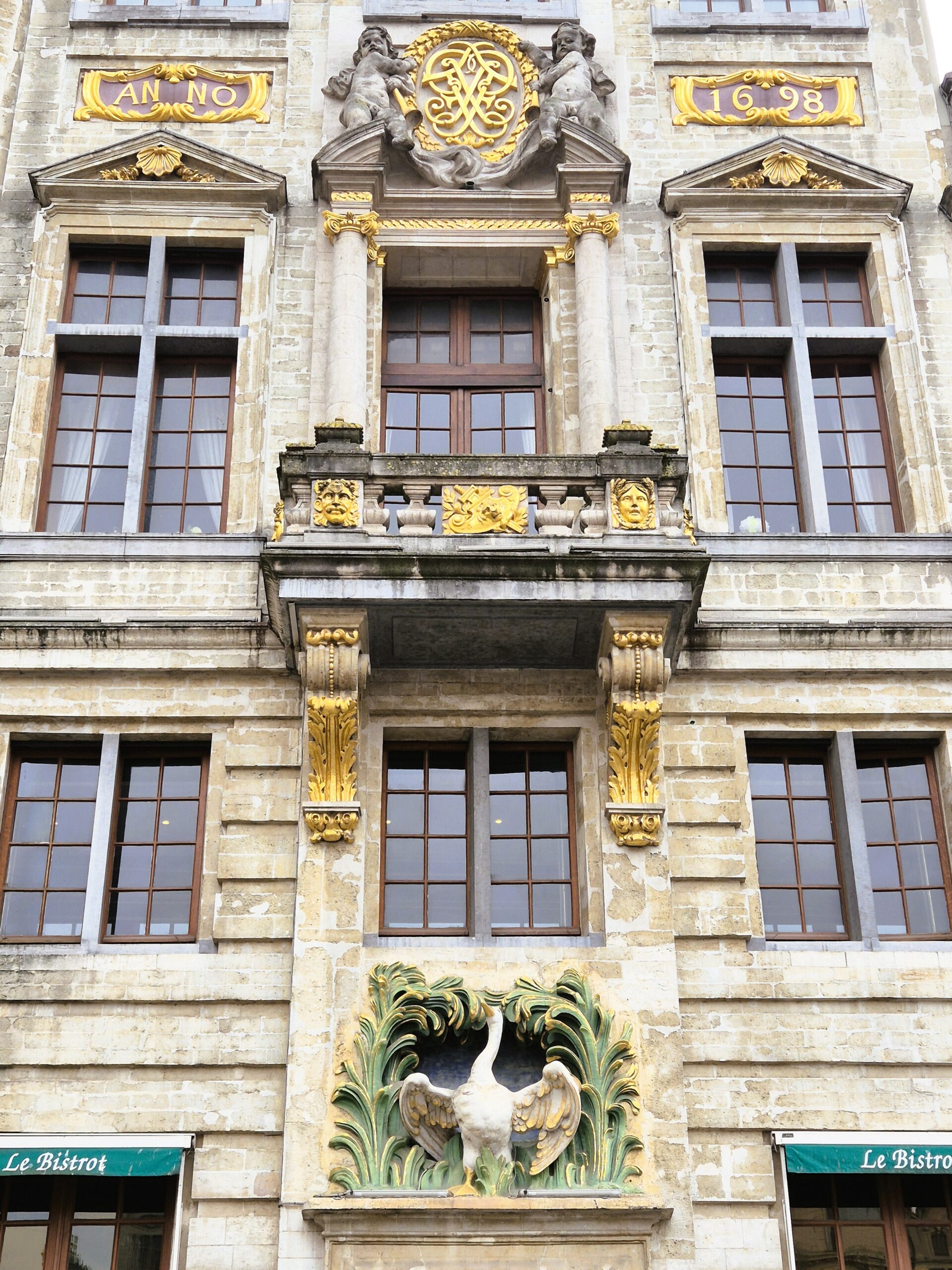 Τρία χρόνια μετά τους ισοπεδωτικούς βομβαρδισμούς του 1695, το «Σπίτι του Κύκνου» που λειτουργούσε από τον 15ο αιώνα ως πανδοχείο, ξαναχτίστηκε όπως φανερώνει η ημερομηνία που αναγράφεται με χρυσά γράμματα στον δεύτερο όροφο, για να στεγάσει τη συντεχνία των κρεοπωλών. Εκείνοι χρηματοδότησαν την ανακαίνιση του ανώτερου τμήματος με το αέτωμα, τη σοφίτα και τα αγάλματα του Κρεοπωλείου, της Αφθονίας και της Γεωργίας, χάρη στα έσοδα που τους απέφερε η πώληση του μαλλιού των ζώων. Στο μέγαρο δίνει το όνομά του ένας καμαρωτός κύκνος -μέρος της εξαιρετικά πλούσιας διακόσμησης-, αλλά αυτό που το κάνει να ξεχωρίζει περαιτέρω, είναι η ιστορική κληρονομιά του ως σταυροδρόμι επαναστατικών ιδεών που σημάδεψε την παγκόσμια πολιτική ιστορία: το 1848 οι Καρλ Μαρξ και Φρίντριχ Ένγκελς επέλεξαν το La Maison du Cygne ως το σκηνικό διατύπωσης του διάσημου Κομμουνιστικού Μανιφέστο τους, ενώ στο ίδιο μέγαρο έλαβε χώρα το πρώτο συνέδριο του Βελγικού Εργατικού Κόμματος.
