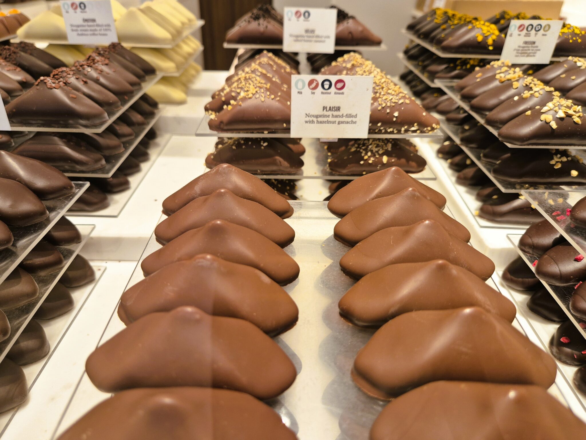 Στο βασίλειο της σοκολάτας το να προσπαθήσεις να προσπεράσεις τον πειρασμό ή να του αντισταθείς είναι μάταιο, αλλά τουλάχιστον κρατήστε την όρεξή σας για τους κορυφαίους, ιστορικούς οίκους σοκολάτας και τις αριστοτεχνικές δημιουργίες τους. Πάνω στην Grand Place, δύο είναι οι must στάσεις: στο μεν Neuhaus, του οποίου η ιστορία ξεκινά το 1857, δημιουργήθηκαν για πρώτη φορά τις περίφημες βελγικές πραλίνες, όταν το 1912 ο γιος του ιδρυτή είχε την ιδέα να προσθέσει γέμιση στα σοκολατάκια του. Η ποικιλία φαντάζει ατέλειωτη, οι γεύσεις είναι ευφάνταστες -από νουγκά, σμέουρο και καραμέλα βουτύρου, ως κρέμα cappuccino, cheesecake, gianduja και αμύγδαλο-μέλι- και αυτό που πρέπει να δοκιμάσετε οπωσδήποτε είναι τα βουτηγμένα στη σοκολάτα μίνι χωνάκια από βελγική βάφλα, με πλούσια γέμιση. Σχεδόν δίπλα, η Chocolaterie Mary μετρά 107 χρόνια ιστορίας, επιδεικνύοντας με περηφάνεια τον βελγικό βασιλικό θυρεό που της έχει αποδοθεί για την άριστη ποιότητα των χειροποίητων δημιουργιών της. Σας κλείνουν το μάτι μέσα σε μεγάλες γυάλες και ονειρεμένα κουτιά, με κάθε τρούφα, πραλίνα ή πλάκα σοκολάτας να περικλείει το πάθος και την τέχνη που δίδαξε στους επόμενους η Mary Delluc.