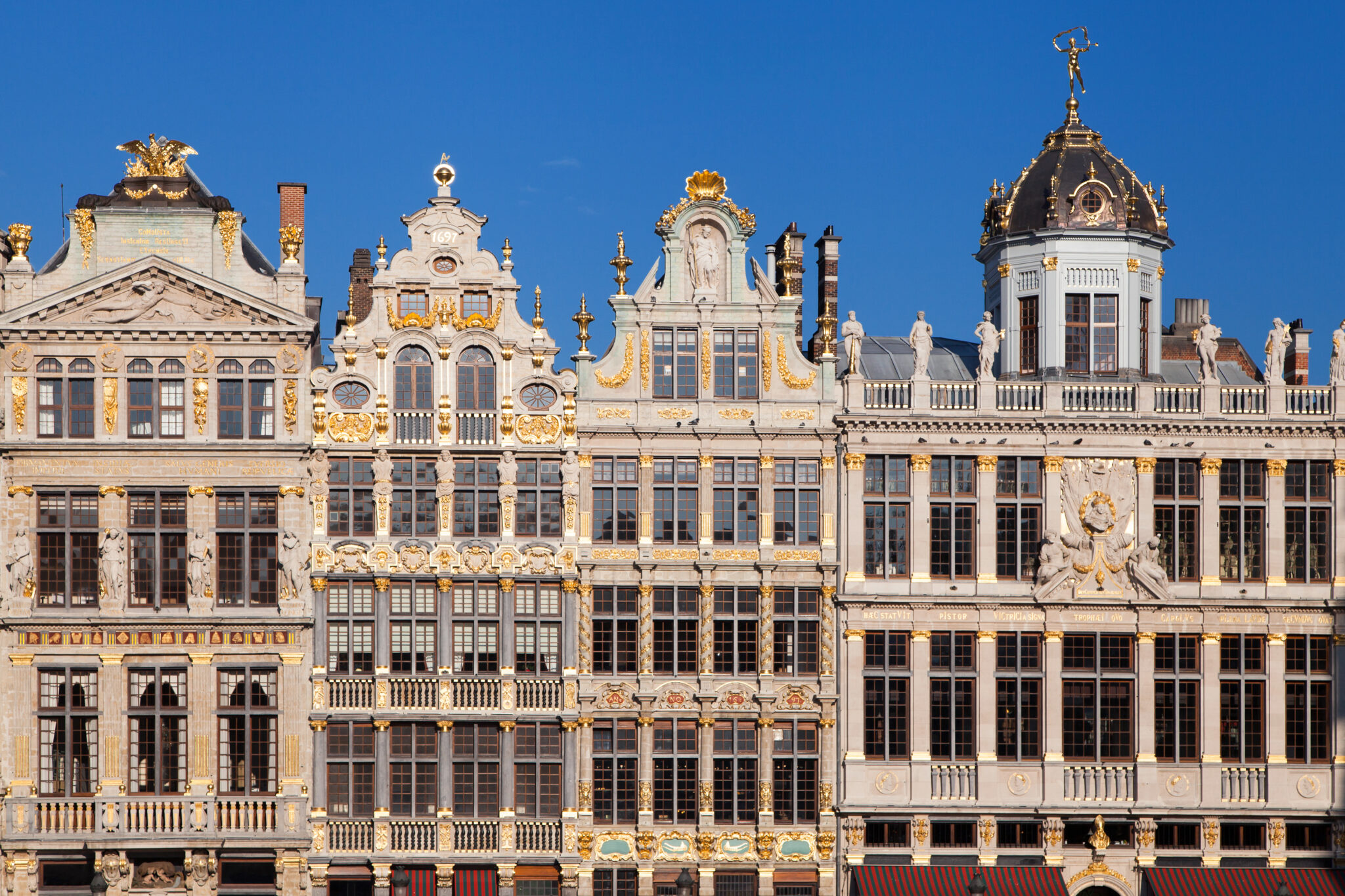 Ένας θρίαμβος του ιταλικού μπαρόκ ερμηνευμένο από Φλαμανδούς αρχιτέκτονες απλώνεται περιμετρικά της πλατείας, κάνοντάς την να αστράφτει όταν ο ήλιος κάνει τη χάρη στο βελγικό ουρανό και χαρίζοντάς της παραμυθένια γοητεία το βράδυ, καθώς φωτίζονται οι οίκοι των παλιών συντεχνιών. Το θέαμα από τα διαδοχικά μέγαρα -ανακατασκευασμένα και αυτά μετά τους βομβαρδισμούς του 1695- είναι μοναδικό, με κάθε πρόσοψη να συναγωνίζεται σε διακοσμητικό πλούτο και συμβολισμούς τη διπλανή της, δίνοντας μια εικόνα της ισχύος και του πλούτου που απέφεραν στην πόλη οι συντεχνίες της: κρεοπώλες, λιπαντές, επιπλοποιοί, βαρελάδες, τοξοποιοί, λεμβούχοι, έμποροι ψιλικών, ζυθοπώλες, βυρσοδέψες, μυλωνάδες, ξυλουργοί, αμαξοποιοί, οικοδόμοι, λιθοδόμοι, ράφτες, γλύπτες και ζωγράφοι, είναι υπεύθυνοι για την αρχιτεκτονική φαντασμαγορία που κληροδότησαν στις Βρυξέλλες.