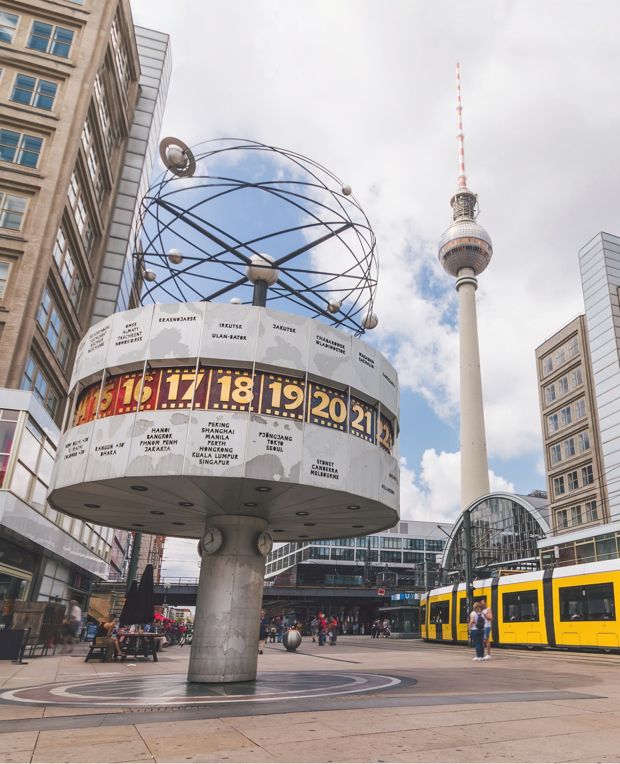 Αντικειμενικά άσχημη αλλά εξαιρετικά πολυσύχναστη, η πλατεία Alexanderplatz που δεν αδειάζει ποτέ, δίνει μια ξεκάθαρη εικόνα της πολυσυλλεκτικότητας και της ανεκτικότητας που επικρατεί στο Βερολίνο. Εδώ, μπορεί να δει κανείς τα πάντα, από το πιο εκκεντρικό ντύσιμο ως τον ψηλότερο πύργο, τον γνωστό Πύργο της Τηλεόρασης-Fernsehturm, που από τα 365 μέτρα του παρακολουθεί τα πάντα. Αυτή την εποχή με τον καθαρό ουρανό, αξίζει να ανεβείτε ως το σφαιρικό παρατηρητήριο για να θαυμάσετε το Βερολίνο καθώς απλώνεται στα πόδια σας. Κάτω από τον Fernsehturm, μεταξύ του γεμάτου γκράφιτι σιντριβανιού και του ρολογιού της παγκόσμιας ώρας Weltzeituhr, πάγκοι φαγητού και μπύρας, live DJ sets κι αυτοσχέδιος χορός, καρουζέλ και τραμπολίνα, μικρά και μεγάλα καταστήματα –πιο αξιόλογο το Galleria Kaufhof-, κινείται ένα ολοζώντανο ποτάμι κόσμου, που είτε απολαμβάνει είτε κοιτάζει σαστισμένο.