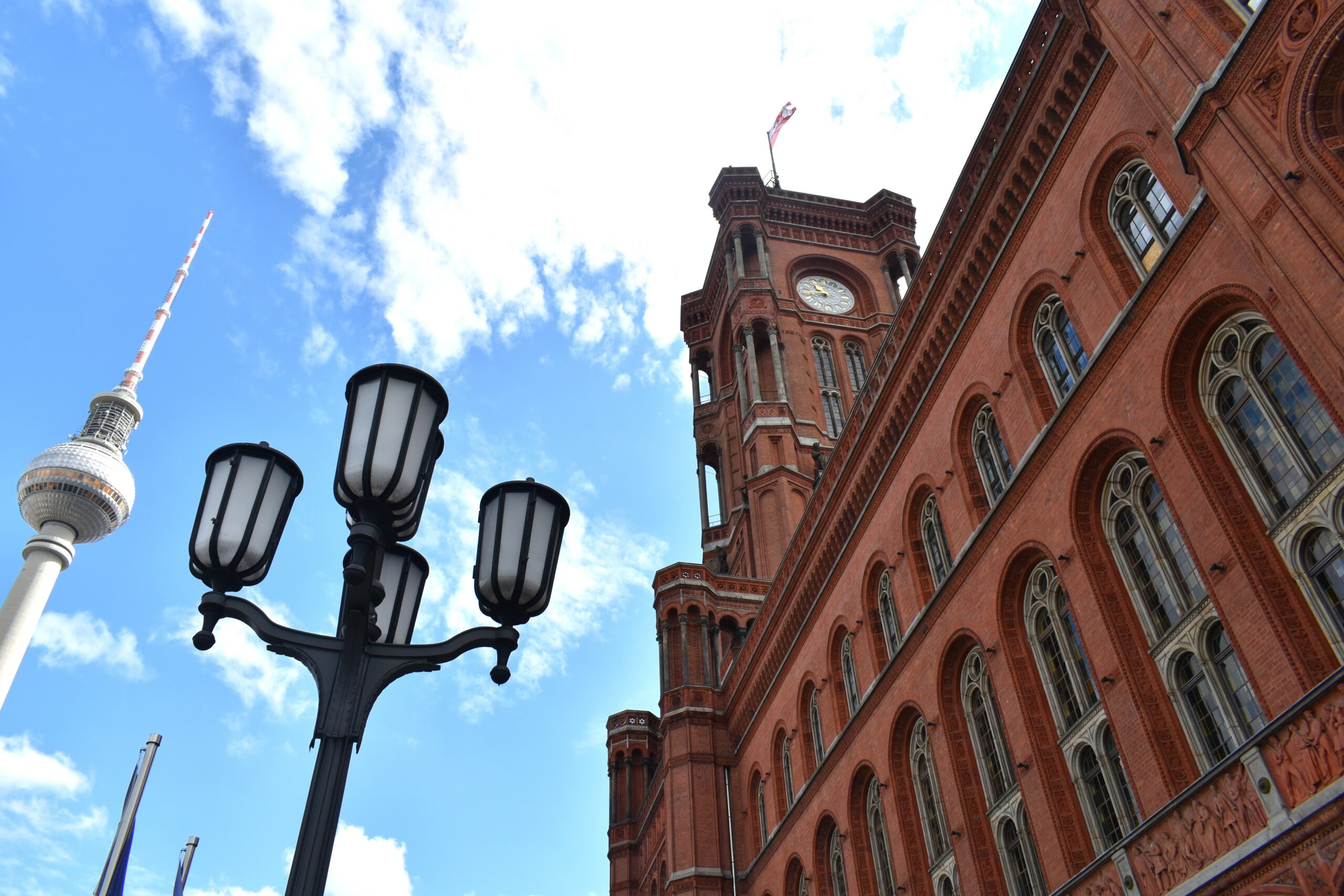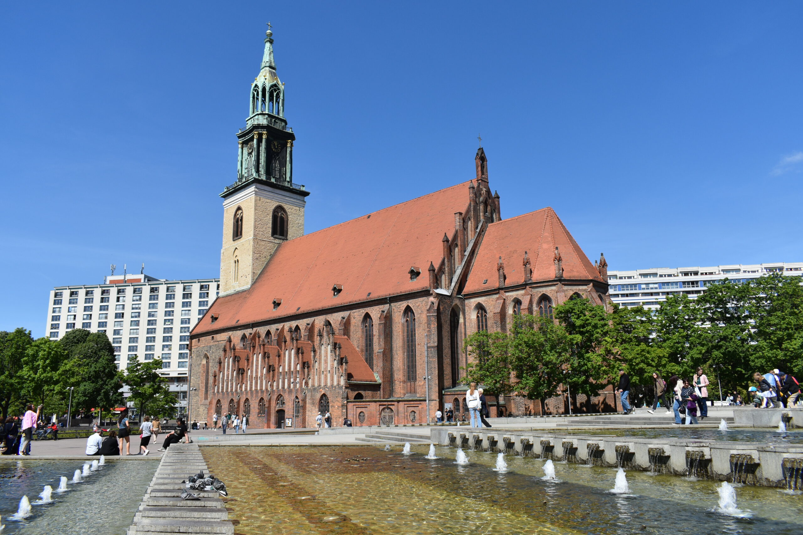 Έτερο θεαματικό ορόσημο, μια ανάσα από τον Fernsehturm και τη χαοτική πλατεία, το λεγόμενο Rotes Rathaus, το «Κόκκινο Δημαρχείο» του Βερολίνου, δεν οφείλει το όνομά του στο σοσιαλιστικό παρελθόν αυτού του τμήματος της πόλης, αλλά στα κόκκινα τούβλα της επαρχίας του Βρανδεμβούργου με τα οποία κατασκευάστηκε. Τις εργάσιμες ημέρες μπορείτε να δείτε μέρος του εσωτερικού, ακόμη όμως κι αν μείνετε μόνο στο εξωτερικό, σίγουρα θα τραβήξει την προσοχή σας η αρκούδα-σύμβολο της πόλης και ο πύργος του ρολογιού. Απέναντί του, τα παιδιά σκαρφαλώνουν ανενόχλητα στο νεομπαρόκ Σιντριβάνι του Ποσειδώνα ή δροσίζονται στο έτερο, κλιμακωτό σιντριβάνι που απλώνεται σχεδόν δίπλα σε μια από τις δημοφιλέστερες για τους ντόπιους εκκλησίες, τη μπαρόκ Marienkirche. Ο οξύαιχμος πύργος της τραβά το βλέμμα από τον τσιμεντένιο γίγαντα της περιοχής, ενώ αξιοπρόσεκτα στο εσωτερικό είναι ο αλαβάστρινος άμβωνας και η γοτθική κολυμπήθρα, πριν μια πρώτη ανάπαυλα είτε στο γρασίδι είτε στα παγκάκια του Marx-Engels Forum, του μικρού κυκλικού πάρκου γύρω από τα γιγάντια χάλκινα αγάλματα των πατέρων του σοσιαλισμού.