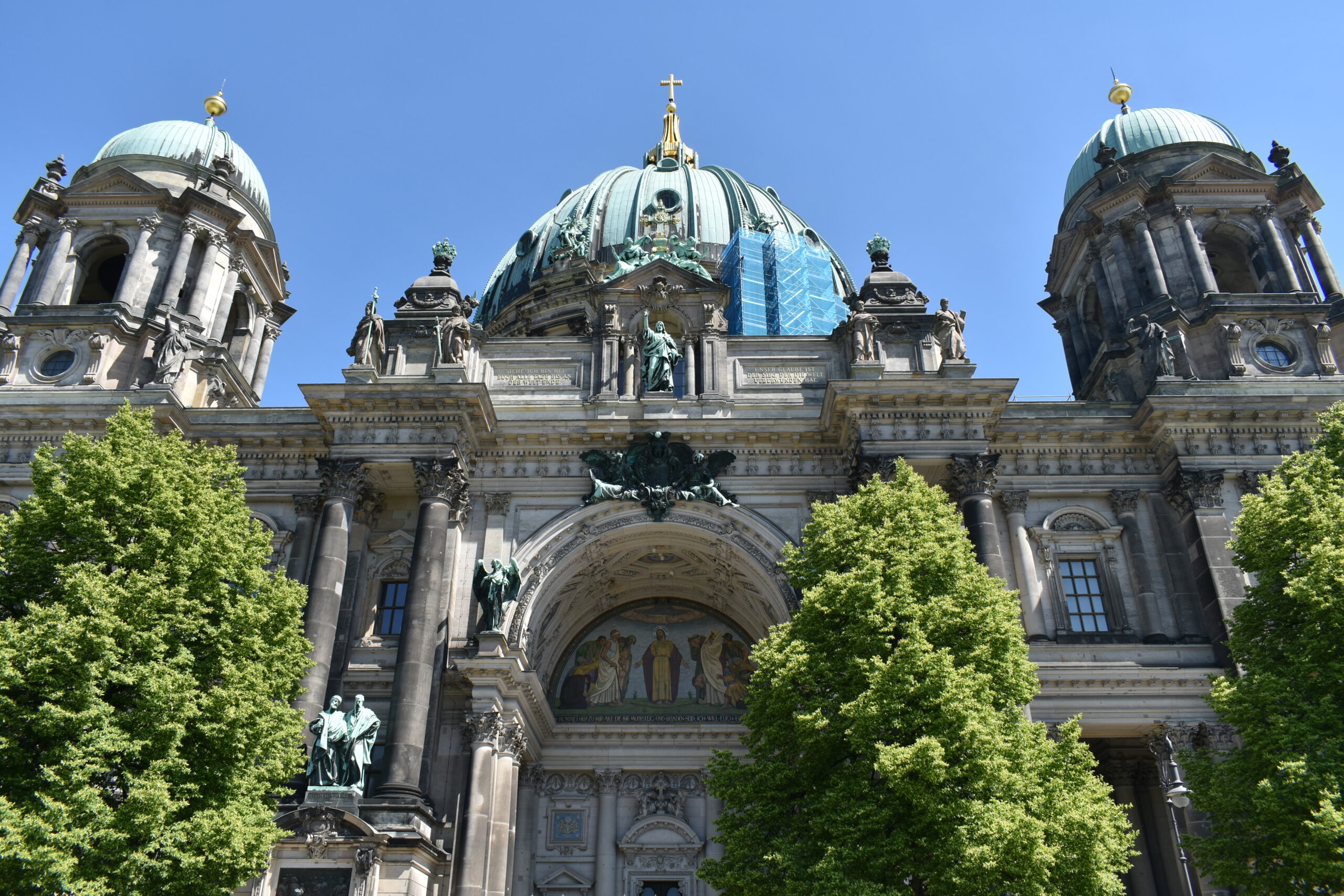 Ο περίτεχνος αναγεννησιακός τρούλος που θα δείτε να ξεπροβάλει 85 μέτρα πάνω από το ποτάμι στην απέναντι πλευρά της λεωφόρου, ανήκει στον Καθεδρικό του Βερολίνου και σίγουρα προκαλεί δέος. Αν το σχέδιο σας φαίνεται οικείο, είναι γιατί πρότυπο για τον προτεσταντικό Berliner Dom υπήρξε ο Άγιος Πέτρος της Ρώμης. Τη βαρυφορτωμένη αρχιτεκτονική του επέβλεπε μάλιστα ο ίδιος ο αυτοκράτορας Γουλιέλμος Β΄ που είχε ενεργό ρόλο στο σχεδιασμό και παρότι η σημερινή μορφή, προϊόν 40ετούς ανοικοδόμησης και συντήρησης μεταπολεμικά, έχει χάσει μέρος του εντυπωσιακού διακόσμου, ο ναός παραμένει άκρως εντυπωσιακός.