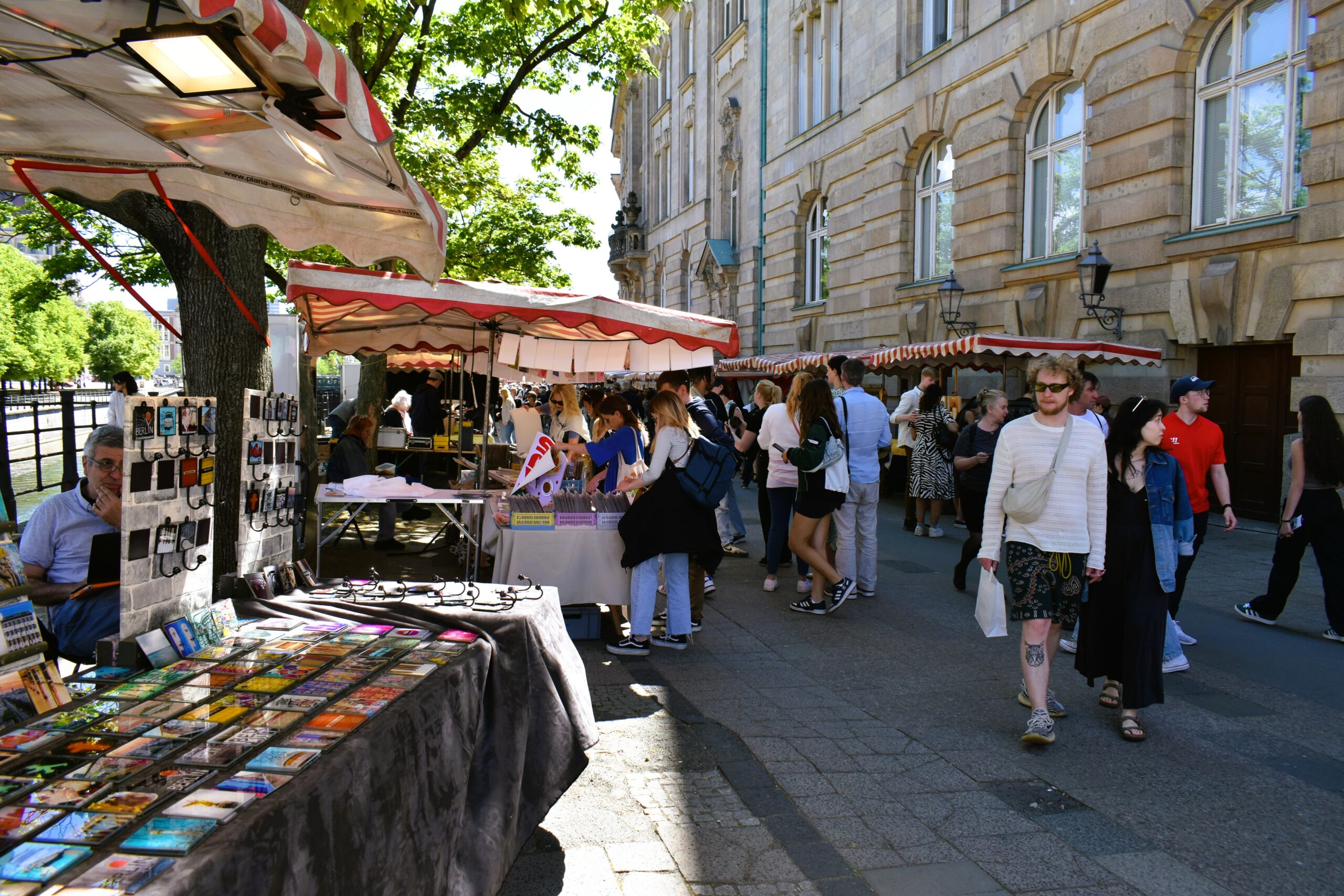 Κάθε Σαββατοκύριακο τέτοια εποχή, δεκάδες πάγκοι εμπόρων, καλλιτεχνών και παλαιοπωλών κατακλύζουν την περιοχή ανάμεσα στο Museumsinslel και το Μουσείο Γερμανικής Ιστορίας και προσφέρονται για χάζι κατά μήκος του Σπρέε, από την γέφυρα Schloßbrücke ως την Ebertbrücke. Δύο διαδοχικές υπαίθριες αγορές στήνονται από το πρωί ως νωρίς το απόγευμα, με την πρώτη –Berlin Art Market– να ειδικεύεται σε χειροτεχνήματα με άποψη και πρωτότυπα δώρα, τη δε δεύτερη και μεγαλύτερη, να σας καλεί να ανακαλύψετε θησαυρούς που κρύβουν ιστορίες: ανάμεσα σε παλιούς δίσκους βινυλίου, CD κλασσικής μουσικής, βιβλία και κόμικς, πορσελάνινα σερβίτσια, second hand ρούχα και vintage αξεσουάρ, θα χάσετε σίγουρα την αίσθηση του χρόνου.