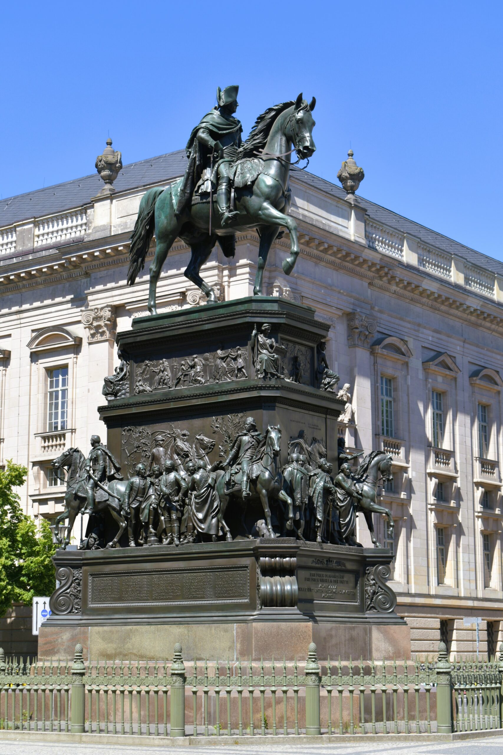 Δύο βήματα παρακάτω, η γεμάτη επιβλητικά μνημεία περιοχή του Forum Fridericianum μαρτυρά όσο λίγες τη μεγαλοπρέπεια και το ένδοξο παρελθόν της Πρωσίας του Φρειδερίκου του Μέγα. Είναι η έφιππη μορφή του που δεσπόζει καταμεσής της Unter den Linden, όπου κάποτε έκανε τις βόλτες της η αστική τάξη. Στη μια της πλευρά θα θαυμάσετε το μεγαλοπρεπές κτήριο του Μουσείου Γερμανικής Ιστορίας με τις μορφές θνησκόντων πολεμιστών στην πρόσοψή του, την Εθνική Βιβλιοθήκη με την εσωτερική αυλή να κρύβει τη δική της πρόσοψη καλυμμένη με αναρριχητικά φυτά, το συγκινητικά λιτό μνημείο Neue Wache για τα θύματα του φασισμού στο νεοκλασικό φυλάκιο του Σίνκελ και το Πανεπιστήμιο Humboldt. Απέναντι, τέχνη και πολιτισμός συνεχίζουν να δίνουν το παρόν, στη σχεδιασμένη από τον ίδιο το Φρειδερίκο Β΄ Bebelplatz.