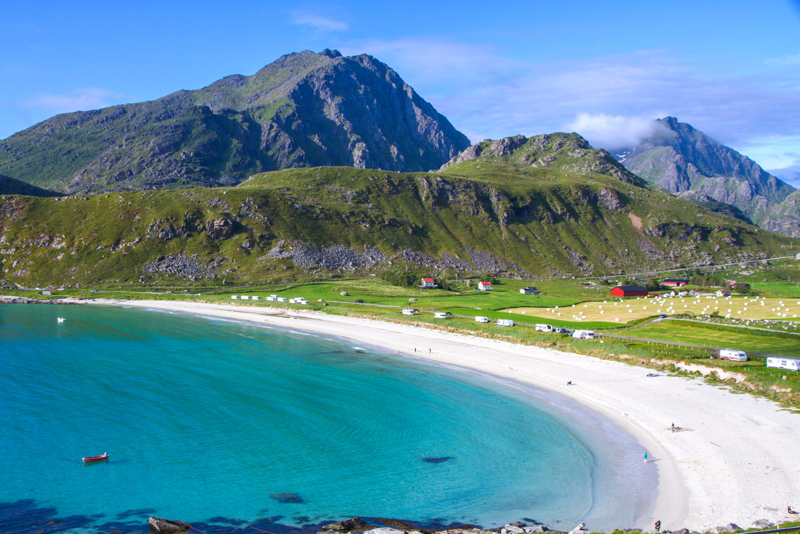Η παραλία που φιγουράρει συχνά στην κορυφή των καλύτερων της Νορβηγίας και των ειδυλλιακότερων της Σκανδιναβίας, σίγουρα δεν αποτελεί μυστικό λίγων. Τοποθεσία της Haukland είναι το θεαματικό Αρχιπέλαγο Lofoten και χαρακτηριστικό της ο σχεδόν εξωπραγματικός συνδυασμός λαμπερής λευκής αμμουδιάς, σμαραγδένιων νερών και δραματικών βουνοκορφών. Παρότι πολλοί φτάνουν ως εδώ αρκούμενοι στο να θαυμάσουν το μεγαλείο της φύσης, η παραλία διαθέτει ένα beach café με σνακ και ζεστά γεύματα, ενώ σύντομα πρόκειται να ανοίξει κέντρο επισκεπτών που θα νοικιάζει και kayak. Κορυφαία εμπειρία η ανάβαση στην εμβληματική κορυφή Mannen για συγκλονιστική θέα του αρχιπελάγους και της παραλίας, η οποία απέχει οδικώς 10-15΄από την πόλη Leknes.