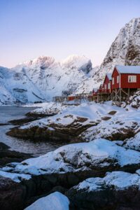 Ο καιρός είναι άγριος και, ταυτόχρονα, σαγηνευτικός. Η ημέρα διαρκεί λίγο, όμως όταν τα σύννεφα αφήνουν τον ήλιο να «διαπεράσει» τον ουρανό, το φως βάφει τα πάντα στο ροζ της πούδρας και σε απαλές αποχρώσεις του πορτοκαλί. Στο Reine, τα σπίτια μοιάζουν να αγκαλιάζονται από τις βουνοπλαγιές, η παραλία Haukland απλώνει την άμμο της κάτω από στρώματα χιονιού, ενώ το γραφικό Henningsvær, χτισμένο πάνω σε μικρά νησάκια, συμπυκνώνει τη μοναδικότητα του τόπου.
