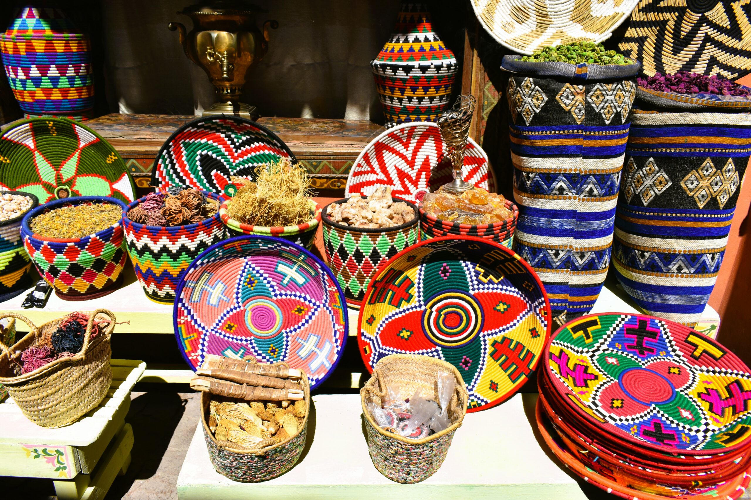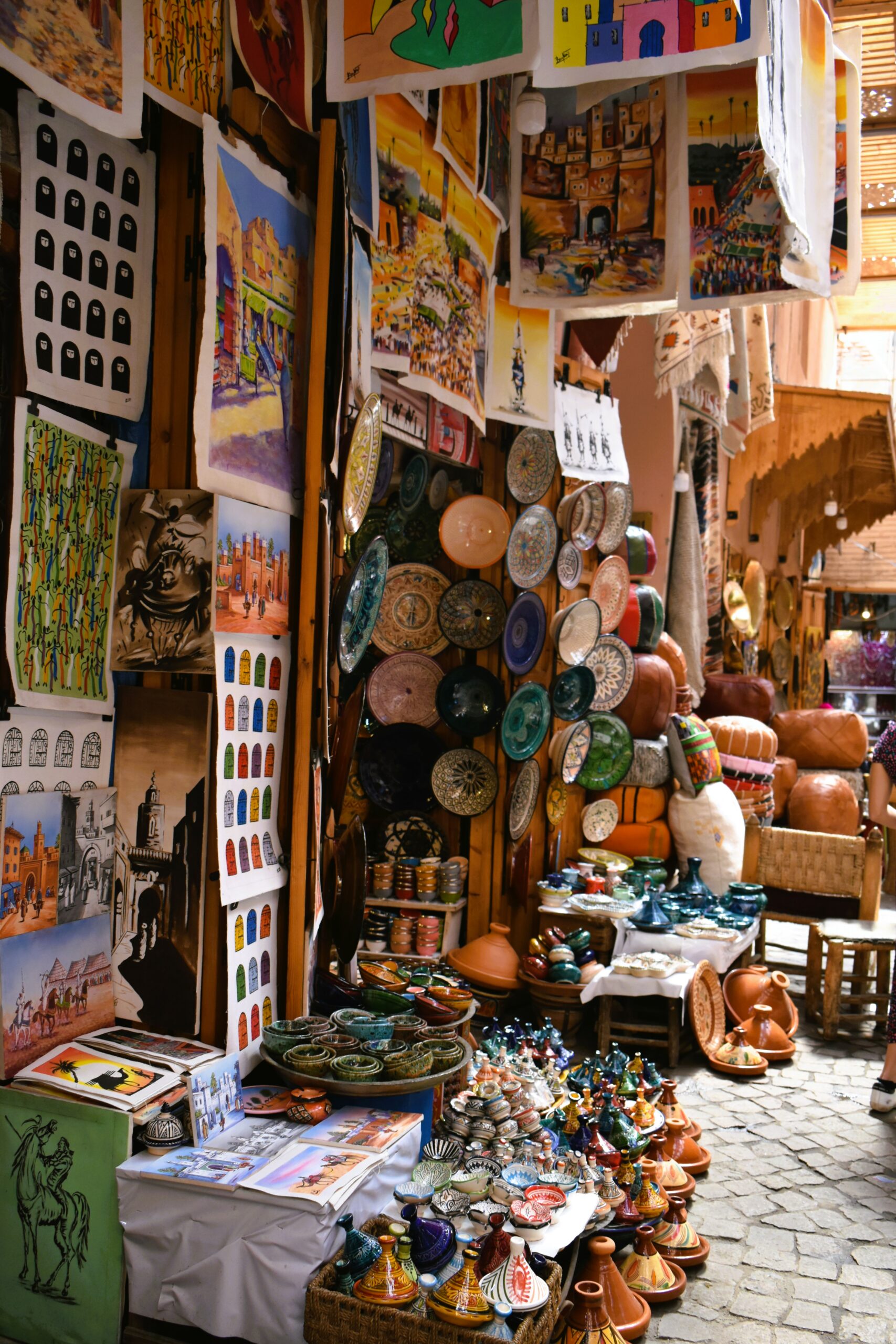 Ο καταιγισμός εικόνων είναι τόσο έντονος που δυσκολεύεσαι να πιστέψεις όσα βλέπεις και ζεις. Στο λαβύρινθο των σουκ που απλώνεται γύρω από την πλατεία, εκατοντάδες ήχοι και αρώματα ξελογιάζουν και μπορούν να σε κρατήσουν χαμένο στον πολύβουο δαίδαλο των μικρομάγαζων για ώρες. Μυρίζοντας μπαχάρια και βότανα, δοκιμάζοντας πολύχρωμα πασούμια, κεντημένες κελεμπίες και περίτεχνα κοσμήματα, τσιμπολογώντας ανατολίτικα σιροπιαστά γλυκά με χρυσαφένια φύλλα, διαλέγοντας αναμνηστικά που ακόμη και τα πιο κιτς μοιάζουν γοητευτικά, θαυμάζοντας χειροποίητα κιλίμια και κεραμικά, αλλά πάντα εξασκώντας την τέχνη του παζαρέματος.