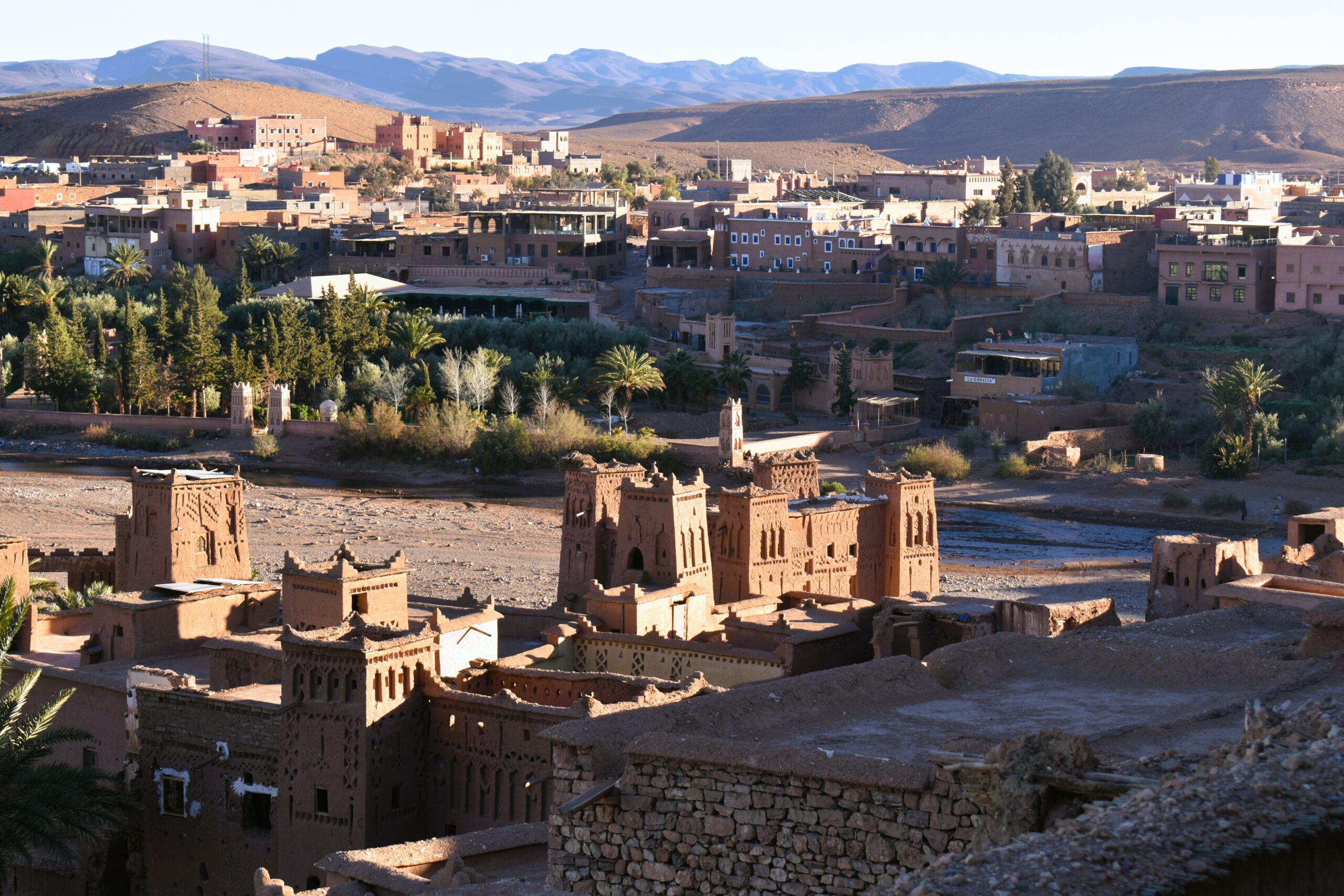 Αν είναι να επισκεφθείτε ένα από τα περίφημα μαροκινά ksar, τα οχυρωμένα, πλινθόκτιστα χωριά που μοιάζουν με καφεκόκκινες καστροπολιτείες σμιλεμένες στους λόφους, αυτό οφείλει να είναι το Αΐτ-Μπεν-Χαντού, το ωραιότερο χωριό του Μαρόκου, σημαντικό αξιοθέατο του Άτλαντα και Μνημείο Παγκόσμιας Πολιτιστικής Κληρονομιάς της UNESCO από το 1997. Το χτισμένο αμφιθεατρικά δίπλα στον ποταμό Ουαρζαζάτ, μοιάζει πρωτόγνωρο και οικείο μαζί. Ένα πρωτοφανές θέαμα από πυργόσπιτα με λιγοστά μικρά παράθυρα, με αποκλειστικό δομικό υλικό τον πηλό, τα καλάμια και την πέτρα κι ένας δαίδαλος από στενά ανηφορικά σοκάκια, συνθέτουν ένα τέλειο δείγμα ισλαμικής αρχιτεκτονικής, μια αυθεντική, απόλυτα γραφική κάσμπα.