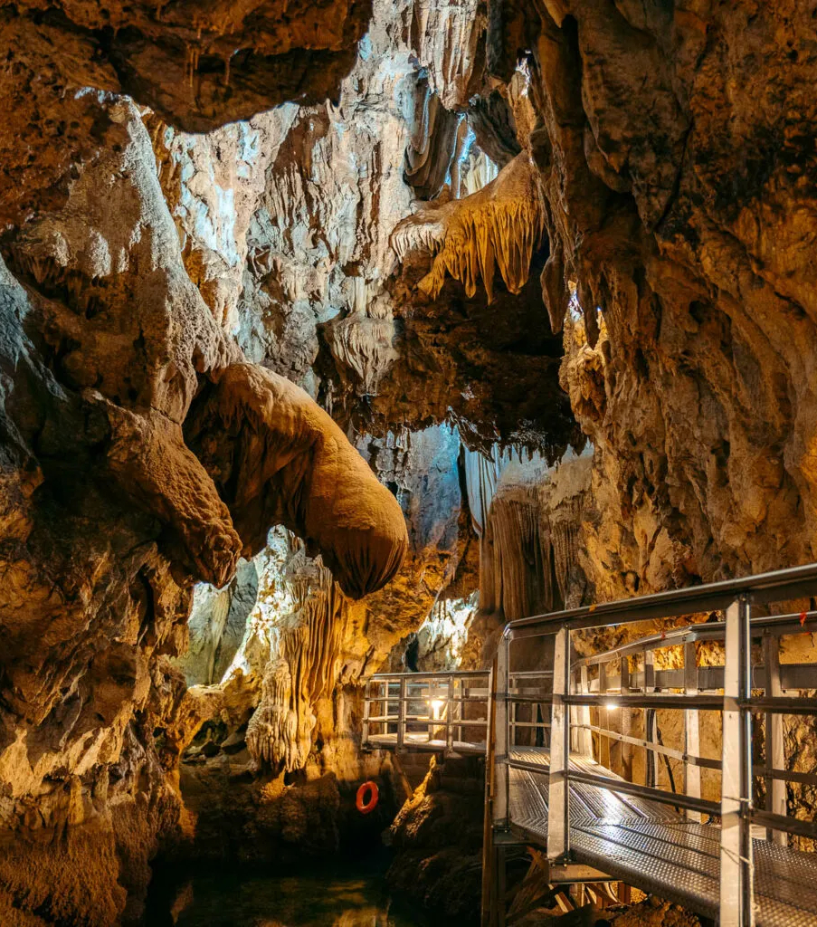Από τις συνολικά 13 λίμνες του σπηλαίου, η επισκέψιμη διαδρομή περνά από τρεις. Το περπάτημα πάνω από αυτές να είναι μια αξέχαστη εμπειρία. Ειδικά αν έρθει κανείς εδώ την άνοιξη, θα δει περισσότερο νερό και μικρούς κλιμακωτούς «πέτρινους καταρράκτες» από τα νερά που στερεοποιήθηκαν.
