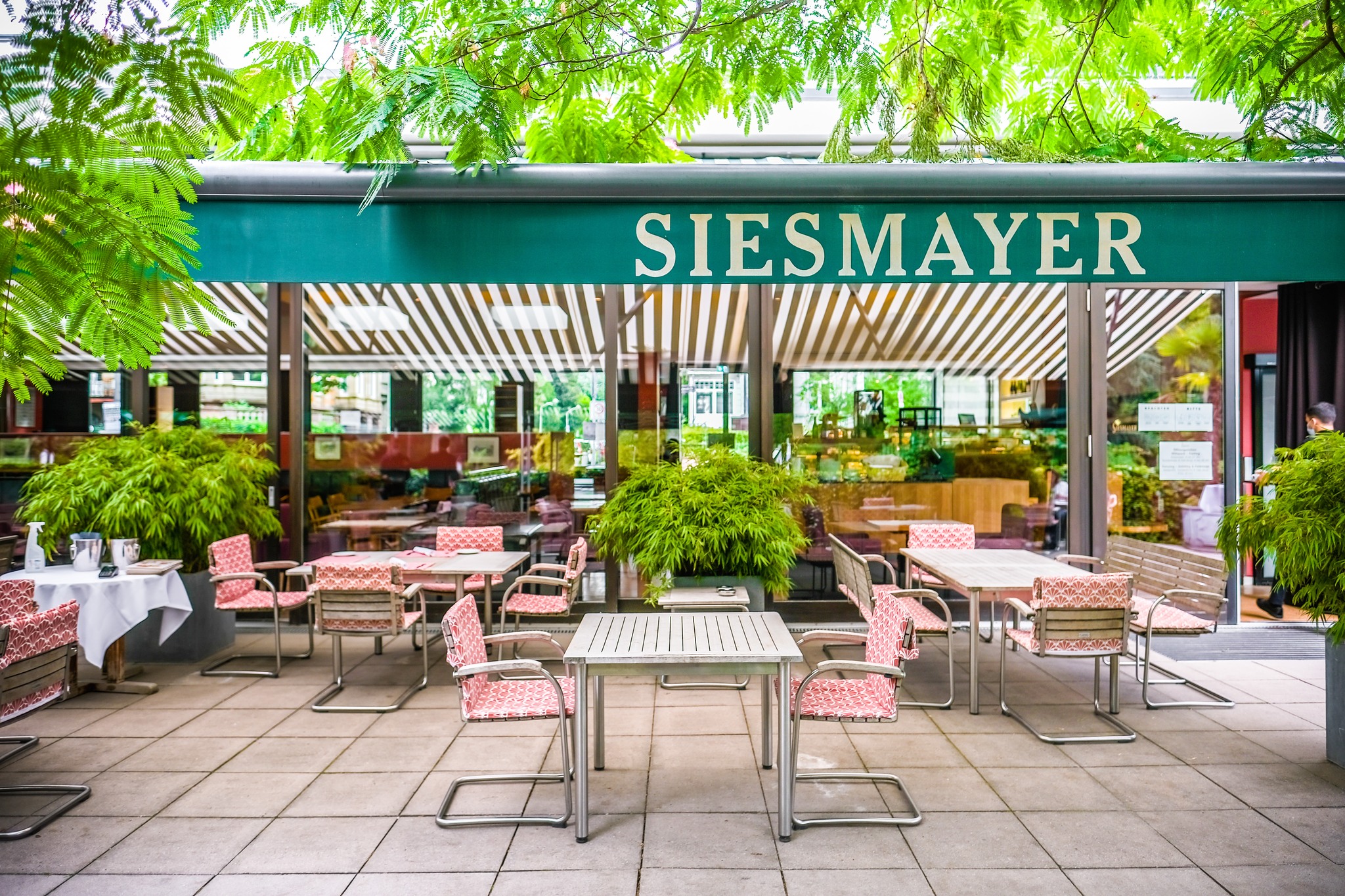 Σταματάμε στο «Café Siesmayer» (Siesmayerstrasse 59) για καφέ και πρωινό: κρουασάν και ψωμάκια, πιατέλες με τυριά και αλλαντικά, μούσλι και κορν φλέικς, γιαούρτι και φρουτοσαλάτες.