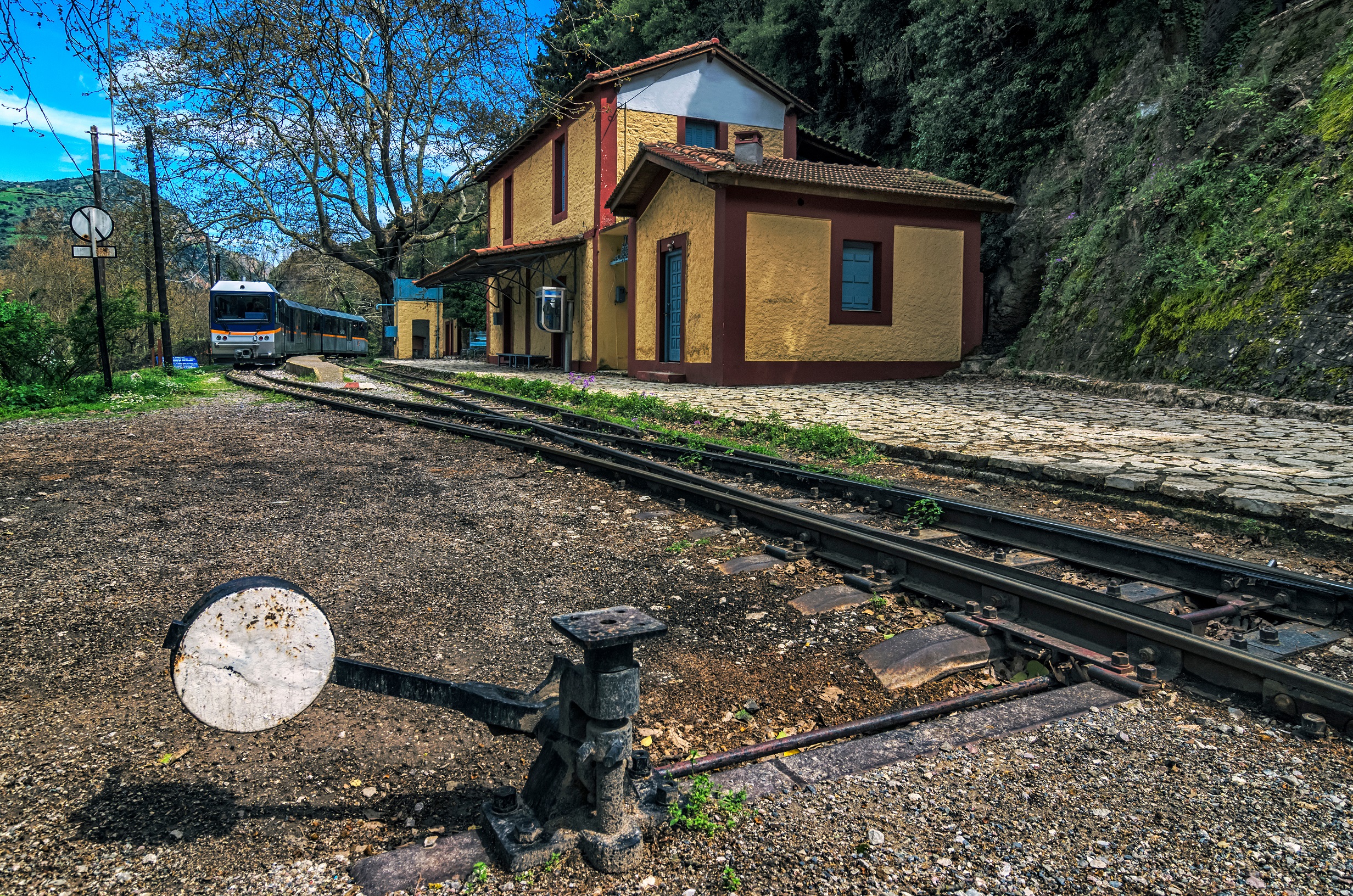 Ένα από τα πρώτα πράγματα που βλέπετε καθώς μπαίνετε στο χωριό, είναι ο σταθμός του λεγόμενου «Οδοντωτού» σιδηρόδρομου. Ξεκινάει από το Διακοφτό και αφού περάσει από τη Ζαχλωρού, φθάνει ως εδώ, ολοκληρώνοντας μια μαγευτική διαδρομή. Ο χαρακτηρισμός «οδοντωτός» οφείλεται στα «δόντια» που χρησιμοποιούν οι αμαξοστοιχίες του τρένου ώστε να σκαρφαλώνουν στις μεγάλες κλίσεις. Διασχίζοντας το φαράγγι του Βουραϊκού, το τρενάκι διανύει 22 χιλιόμετρα, αναρριχάται σε υψόμετρο 750 μέτρων και φθάνει στα Καλάβρυτα μετά από περίπου 1 ώρα.