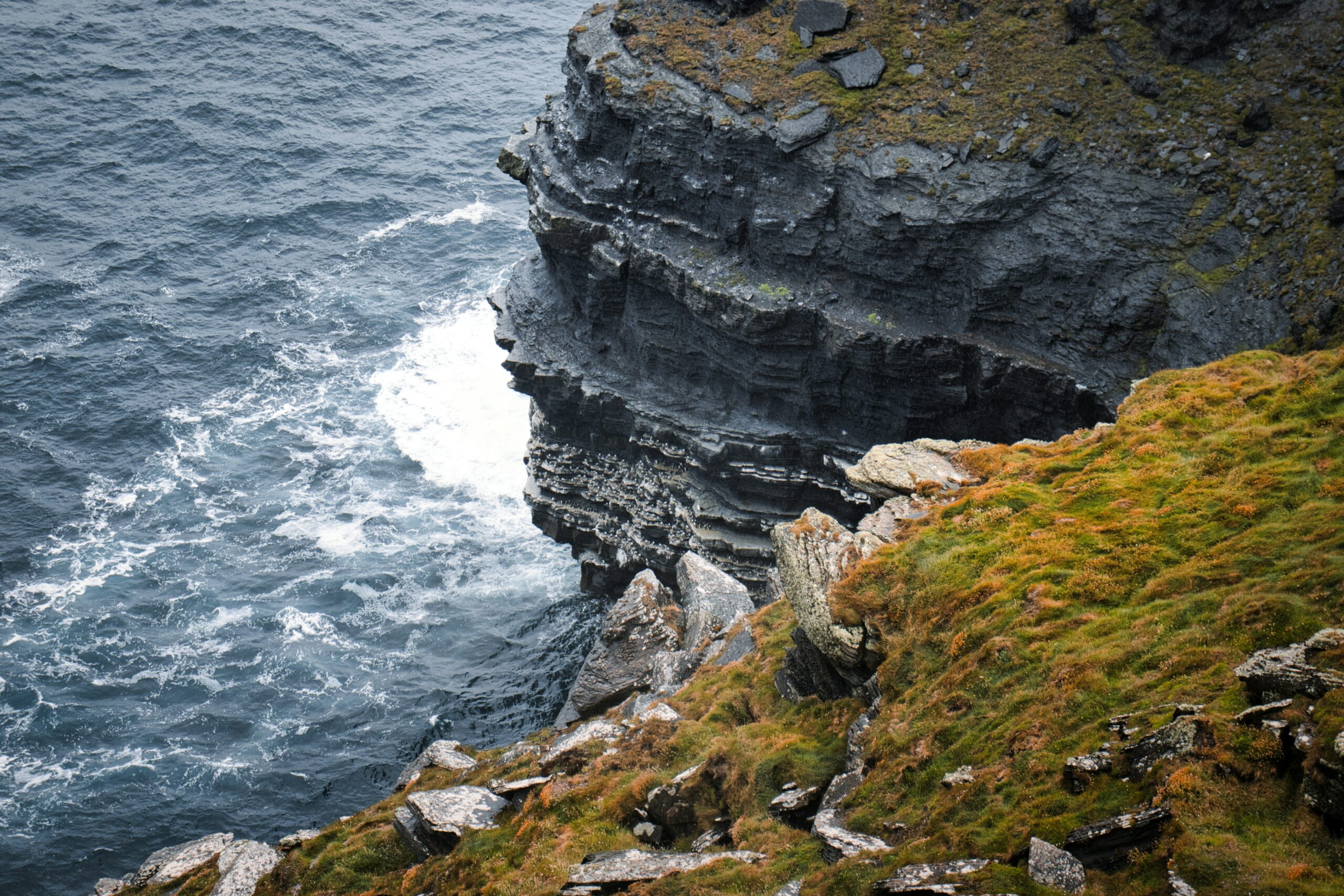 Τα Cliffs of Moher είναι από εκείνα τα μέρη που «ορίζουν» την εικόνα της Ιρλανδίας, όπως όταν μιλάμε για Ελλάδα και το μυαλό πηγαίνει σε ξωκλήσια, Αιγαίο και βραχονησίδες. Οι βράχοι υψώνονται κάθετα πάνω από τον Ατλαντικό, φτάνοντας σε ύψος που ξεπερνά τα 200 μέτρα, και σχηματίζουν μια συνεχόμενη, δραματική ακτογραμμή.
