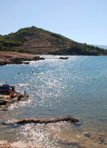 Αφού περπατήσετε τον αρχαιολογικό χώρο, θα κατεβείτε προς τη θάλασσα, όπου έχετε τις εξής επιλογές για βουτιές: την στενόμακρη παραλία Μαρκοπούλου, την κάπως πιο κοσμοπολίτικη παραλία των Αγίων Αποστόλων ή αυτή του Αγκώνα με τα λιγοστά αρμυρίκια. Προφανώς, μπορείτε να επιλέξετε όποιο άλλο σημείο σας αρέσει στη διαδρομή ή να κατευθυνθείτε προς την αντίθετη πλευρά προς το Δήλεσι ή την παραλία της Αυλίδας. Σε κάθε περίπτωση, καθώς πρόκειται για οργανωμένους οικισμούς, θα βρείτε πολλές επιλογές σε ταβερνάκια και καφέ.