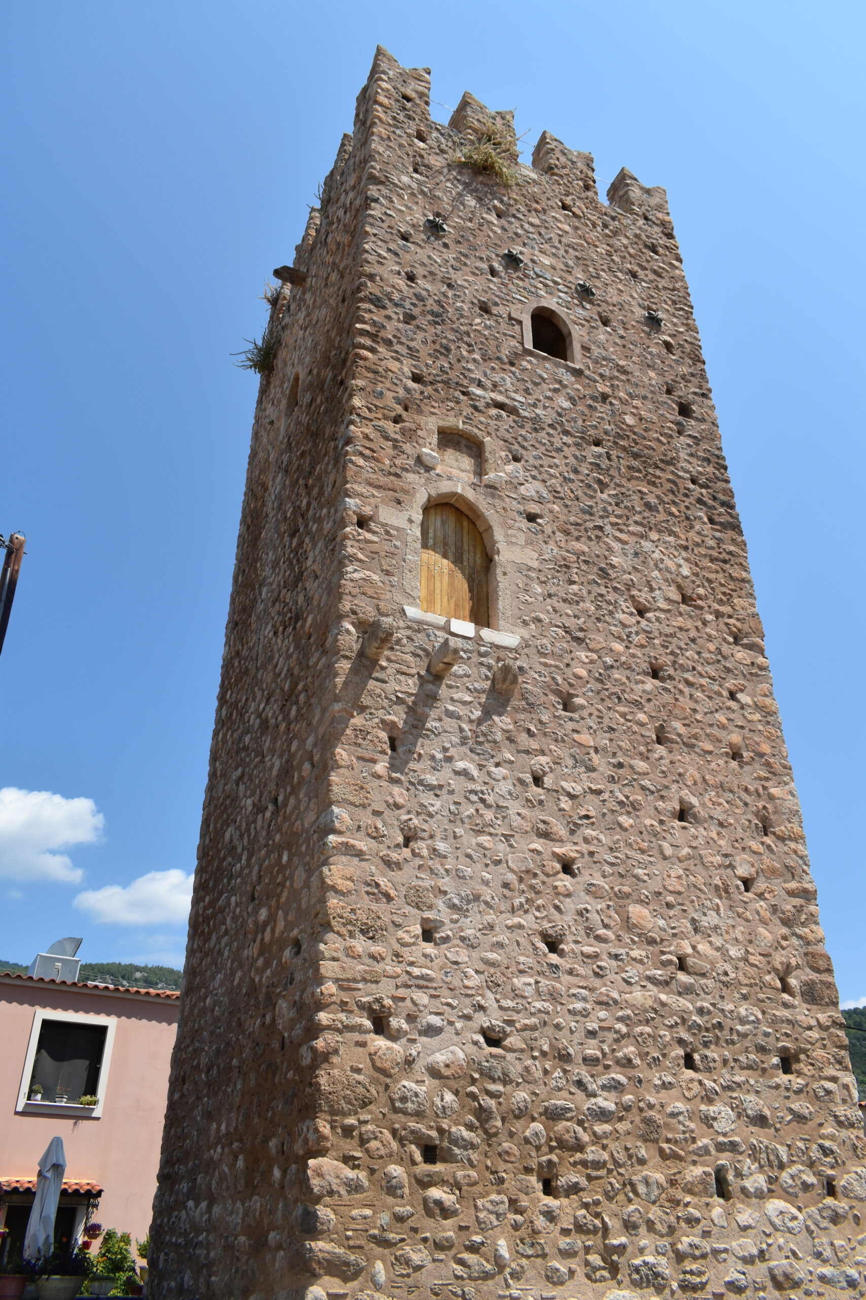 Μοιάζει απίστευτο, αλλά σε τούτο εδώ το χωριό, λίγα μέτρα από την κεντρική πλατεία, ξεπροβάλλει επιβλητικός και καλοδιατηρημένος ένας ψηλόλιγνος, τετραώροφος πύργος, τετράγωνης κάτοψης. Πρόκειται για κατάλοιπο της εποχής της Ενετοκρατίας, με πιθανότερο να έχει ανεγερθεί τον 12ο αιώνα, ώστε να αποτελέσει την έδρα κάποιου δόγη ή ευγενούς που έλεγχε την περιοχή. Η σημερινή είσοδος στο ισόγειο διαμορφώθηκε μόλις το 1973, ενώ παλαιότερα το επίπεδο αυτό αποτελούσε την αποθήκη φύλαξης των προϊόντων που καλλιεργούσαν οι πάροικοι στα γύρω κτήματα. Την εποχή εκείνη, η κύρια είσοδος του οχυρωματικού πύργου βρίσκονταν στο δεύτερο όροφο για λόγους ασφαλείας, καθώς οι επιθέσεις πειρατών στο χωριό δεν ήταν ασυνήθιστες, και η πρόσβαση στο ψηλότερο αυτό επίπεδο γινόταν με εξωτερική, αποσπώμενη σκάλα.