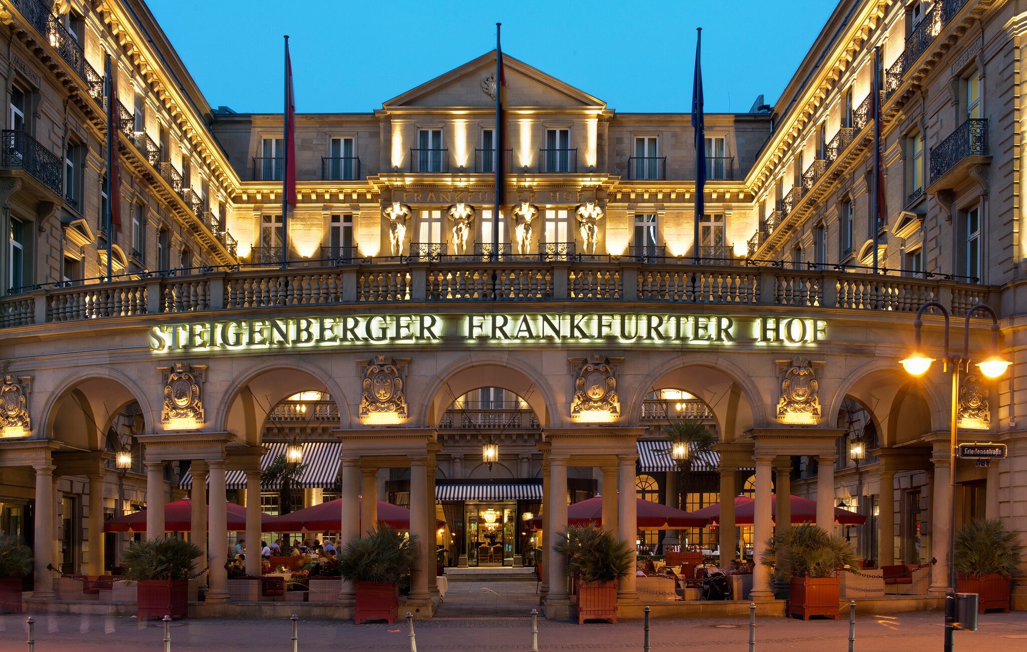 5.Αν η Kleinmarkthalle είναι η αντίστοιχη δική μας Βαρβάκειος τότε το Steigenberger Icon Frankfurter Hof ξενοδοχείο αντιστοιχεί στη δική μας Μεγάλη Βρετανία από άποψη ύφους και ιστορικής σημασίας. Είναι το πρώτο ξενοδοχείο στη Γερμανία που είχε ηλεκτρικό ρεύμα και το πρώτο που είχε τηλέφωνο για κλήσεις εξωτερικού στη Φρανκφούρτη. Είναι το ξενοδοχείο από όπου έχουν περάσει η αυτοκράτειρα Βικτωρία, ο Φρανσουά Μιτεράν, ο βασιλιάς Χουάν Κάρλος, ο Έλτον Τζον, οι Rolling Stones κ.ά. ενώ σήμερα φιλοξενεί πολιτικούς ξένων χωρών όταν επισκέπτονται επίσημα την Φρανκφούρτη, ευρωβουλευτές κ.ά. Άνοιξε τις πόρτες του το 1876 και είναι πραγματικά ένα συγκλονιστικό κτήριο που σίγουρα δεν θα ξεφύγει από τη ματιά σας εάν περάσετε από την περιοχή. Βρίσκεται μεταξύ της τραπεζικής περιοχής και της Παλιάς Πόλης και αξίζει να έρθετε για ένα καφέ στο πολύ όμορφο εξωτερικό του χώρο ή και για ένα γεύμα στην πολύ σικάτη μπρασερί OSCAR’s.