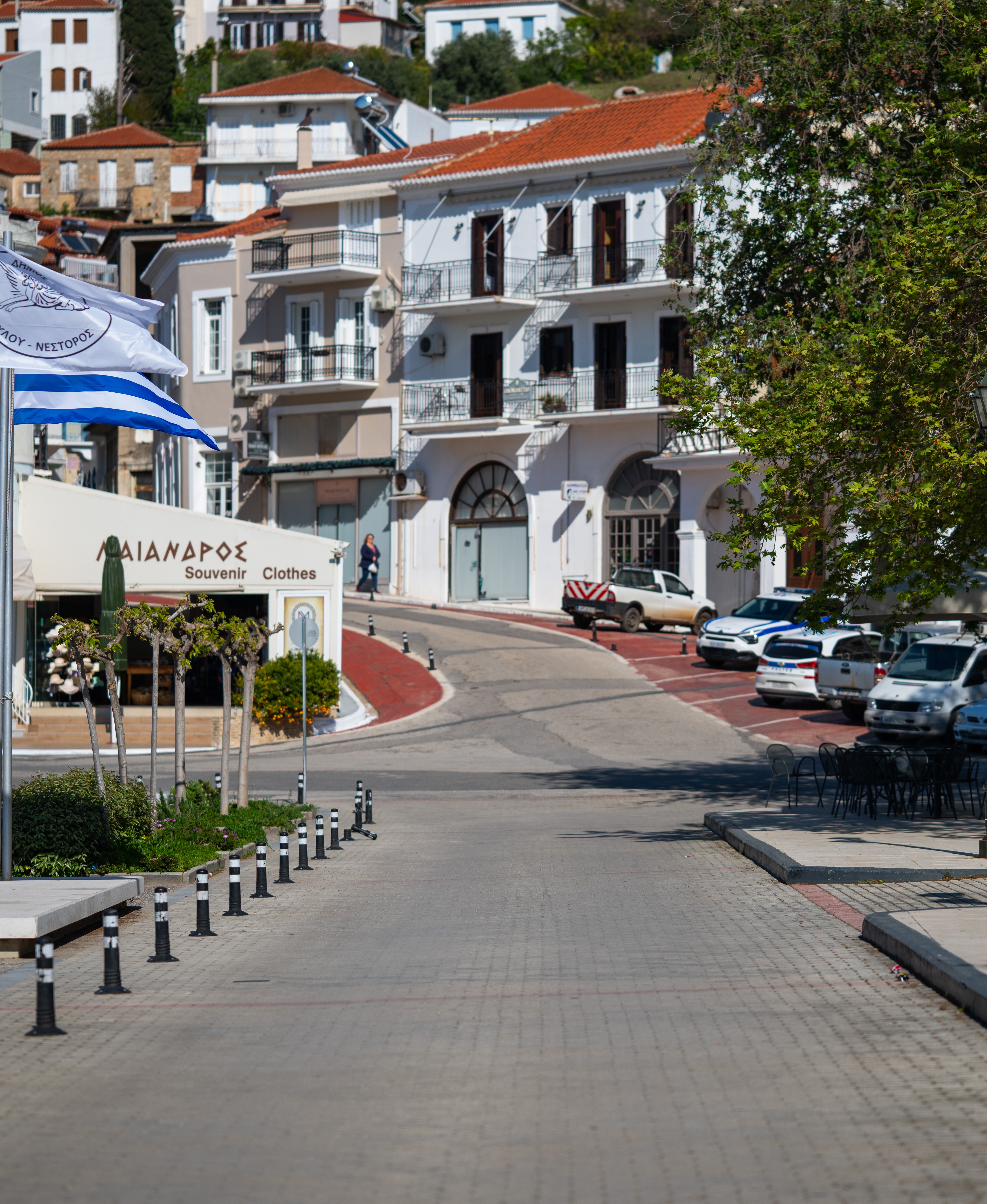 Η καλοκαιρινή ζωή στη μικρή πολιτεία περιστρέφεται γύρω από το μπάνιο και τη διασκέδαση στη θάλασσα. Στον δρόμο της αγοράς λειτουργούν μαγαζιά, ψητοπωλεία και ταβέρνες, ενώ αξιόλογες είναι και οι εσωτερικές πλατείες με τα πλατάνια, όπως η πλατεία Ανδρέα Συγγρού, που πήρε το όνομά της από το Δημοτικό Σχολείο με τα νεοκλασικά στοιχεία, το οποίο χρονολογείται από το 1901 και ανεγέρθηκε με δωρεά του γνωστού ευεργέτη.