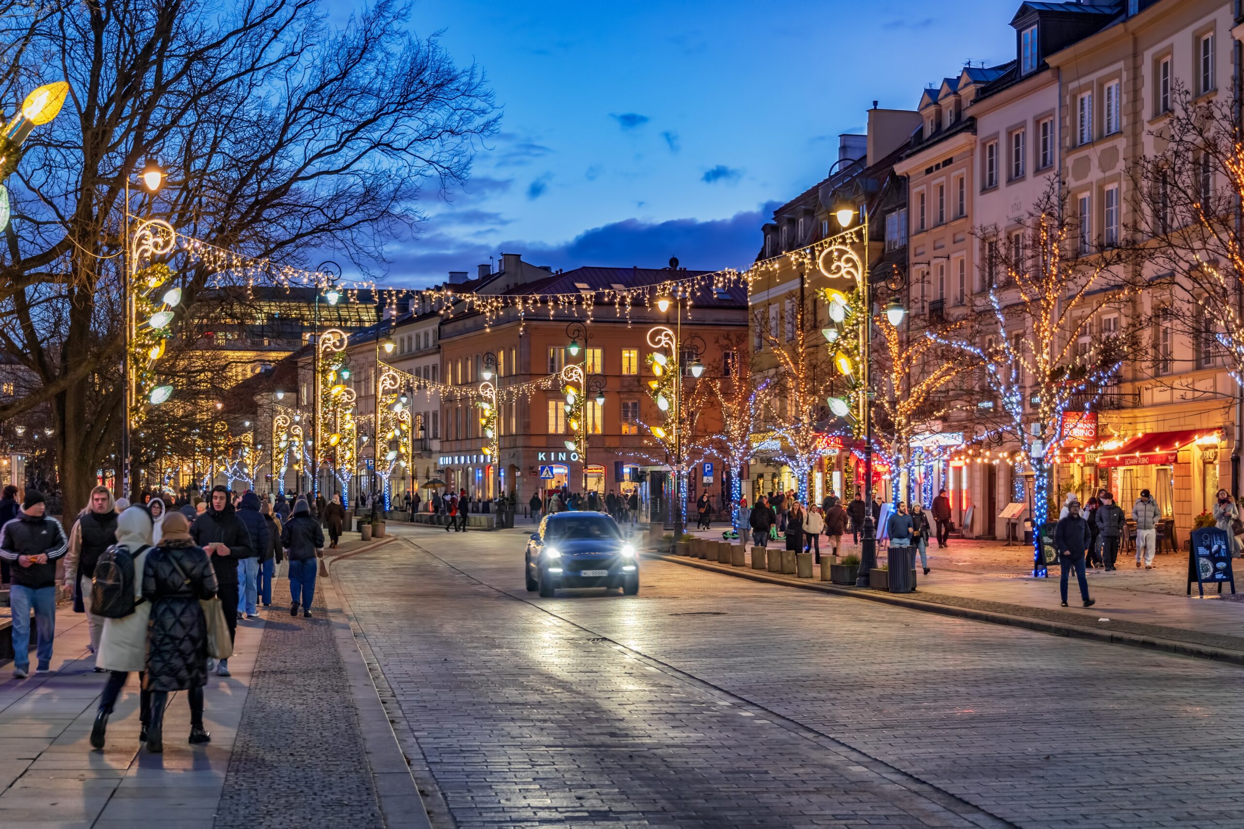 Επιβάλλεται η βόλτα κατά μήκος της Βασιλικής Διαδρομής, καθώς και μια στάση στο χριστουγεννιάτικο δέντρο ύψους 30 μέτρων στην Πλατεία του Κάστρου. Αξίζει με τα χίλια και η επίσκεψη στο παλάτι Wilanów το βράδυ για να δείτε μια από τις παραστάσεις που δίνουν τα χριστουγεννιάτικα φώτα χορεύοντας στο ρυθμό της κλασικής μουσικής. Μπορείτε επίσης να κάνετε τα πρώτα σας βήματα στο πατινάζ στο Παλάτι Πολιτισμού και Επιστημών ή στην Πλατεία της Παλιάς Πόλης.