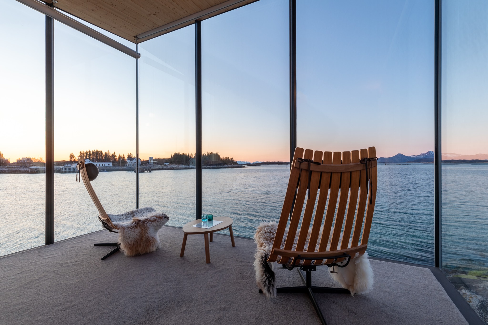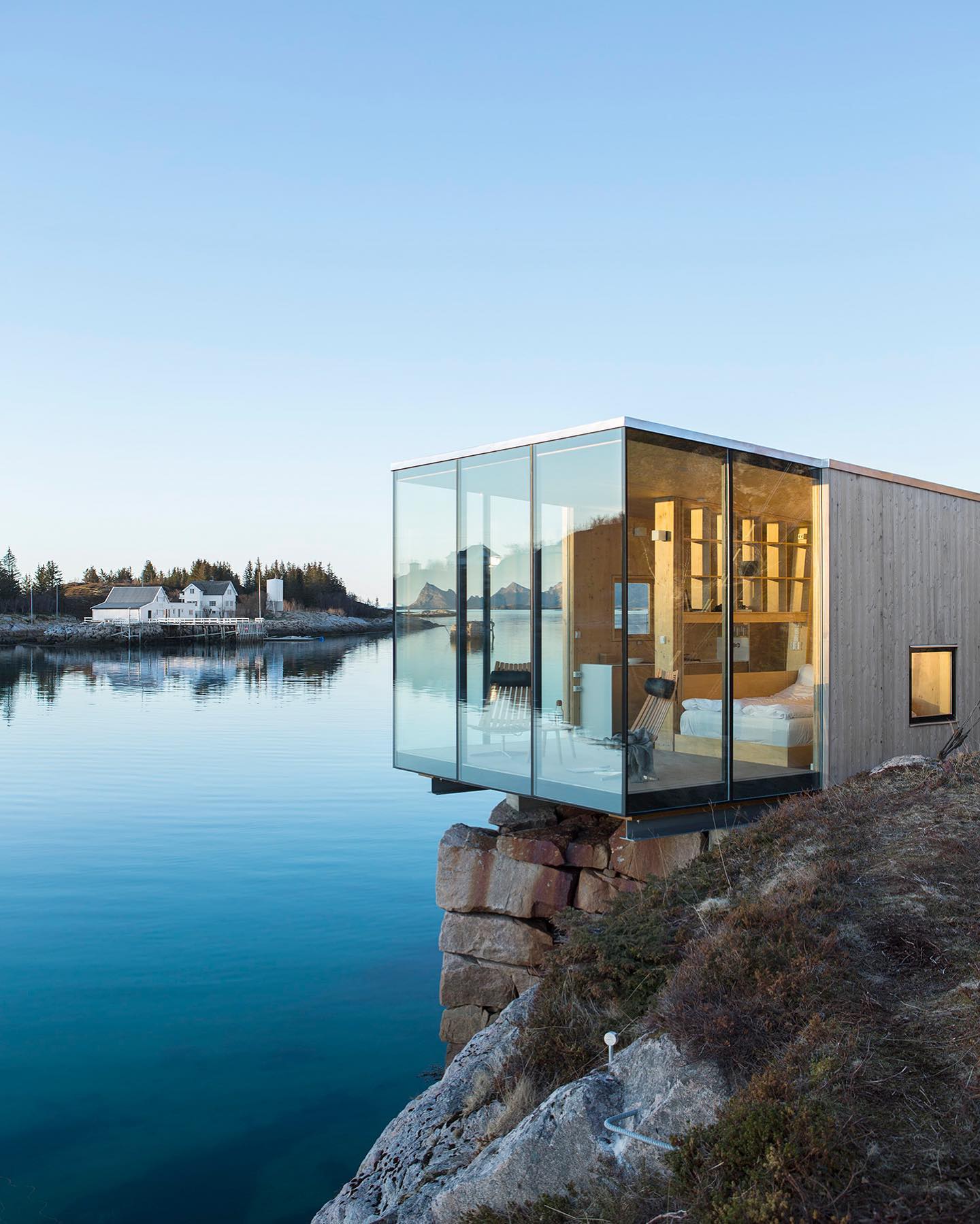 Φθάνετε στο Όσλο κι από κει πετάτε για Bodø, από όπου αλλάζετε δύο φορές σκάφος ή εναλλακτικά, φτάνετε με ferry boat στο Nordskot, από όπου σας παραλαμβάνει το ιδιωτικό σκάφος του ξενοδοχείου. Οι βραβευμένες καμπίνες-δωμάτια που κρέμονται κυριολεκτικά πάνω από την άκρη του νερού, προσφέροντας συγκλονιστική θέα στην απέραντη θάλασσα και τα γύρω βουνά, σας κάνουν να ξεχάσετε αμέσως το μακρύ ταξίδι. Οι δε γυάλινοι τοίχοι τους θα σας κάνουν να νιώσετε ένα με το απόκοσμο τοπίο κι αν είστε τυχεροί ίσως δείτε το βόρειο σέλας από το ίδιο το κρεβάτι σας.