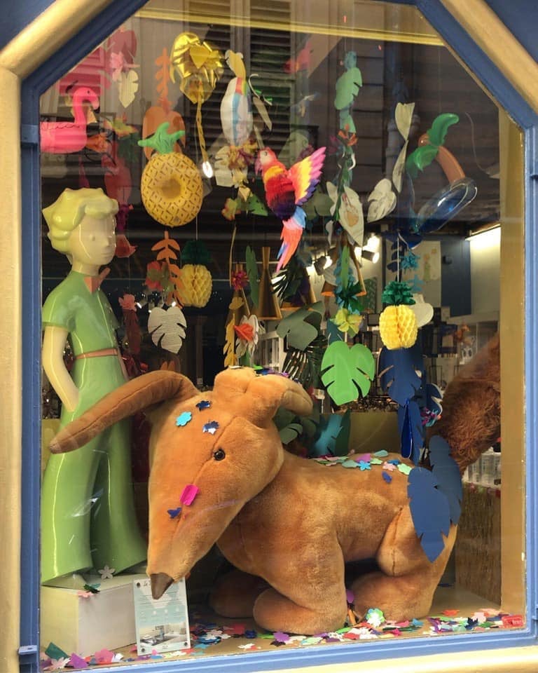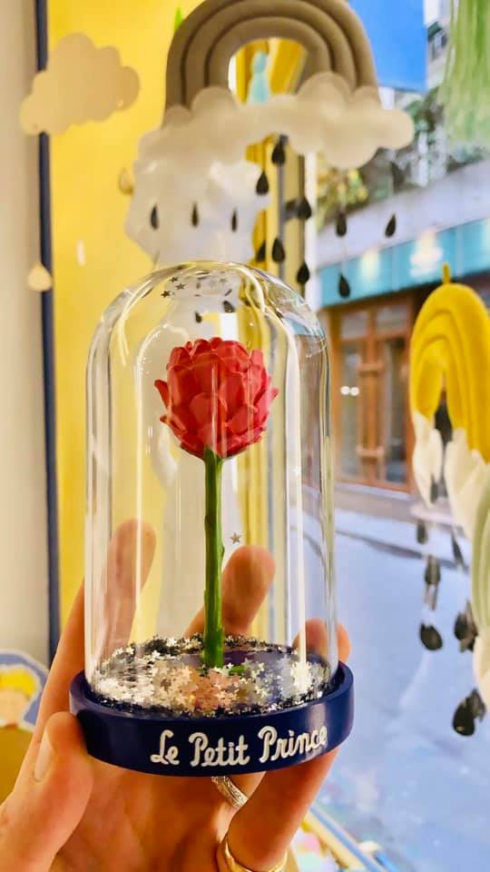 Το χαριτωμένο, μικρό μαγαζί που βρίσκεται στo νούμερο 8 της οδού Rue Grégoire de Tours στην ιστορική συνοικία Saint Germain des Pres διαθέτει μία χαρακτηριστικότατη μπλε πρόσοψη και ένα παγκάκι μπροστά στην είσοδο και έτσι είναι σχεδόν αδύνατο να μην το παρατηρήσετε περνώντας από μπροστά του. Εκεί θα βρείτε ό,τι μπορεί να βάλει ο νους σας γύρω από το υπέροχο παραμύθι του Σαιντ-Εξυπερύ. Από σελιδοδείκτες με ανάγλυφο, χρυσό τύπωμα και κούπες καλυμμένες με κόκκινα τριαντάφυλλα μέχρι υπερμεγέθεις φιγούρες της πανέμορφης αλεπούς, μαξιλαράκια, αεροπλανάκια, μολύβια και κασετίνες.
