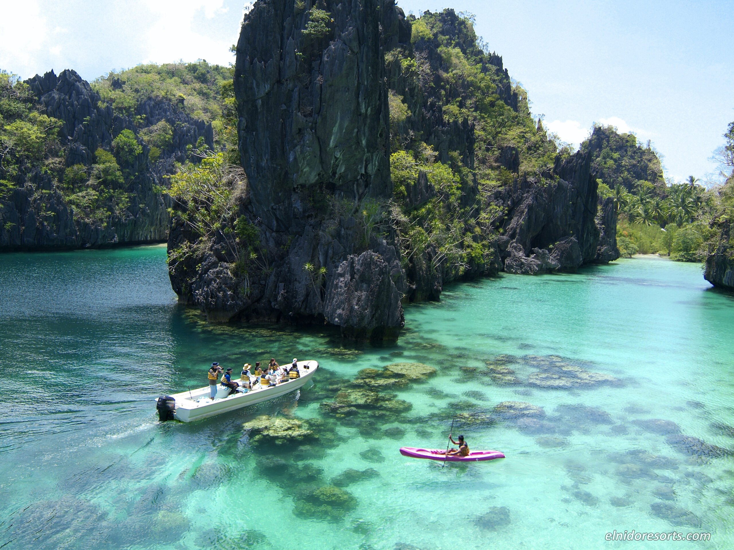 Η εμπειρία στα Lagoons είναι συγκλονιστική. Μέσα από κρυμμένες καλά σπηλιές ξεπροβάλουν πισίνες στη θάλασσα που περιβάλλονται από γκρι βράχια από limestone στα οποία φυτρώνουν φοίνικες. Είμαστε μόνοι μας σε όλα τα lagoons αλλά και στο μικρό νησί Entalula. Με καραβάκι από ξενοδοχείο -περιλαμβάνεται στη τιμή- θα γυρίσετε όλα τα γύρω νησάκια αλλά και μεγάλες κρυφές σπηλιές και τις λευκές σαν πούδρα, ερημικές παραλίες. Big lagoon, small lagoon, secret lagoon, cathedral cave μπήκαν στο λεξιλόγιό μας και στις καρδιές μας! Ότι ονειρευόμασταν ότι θα βρούμε στις Φιλιππίνες το βρήκαμε στο El Nido.