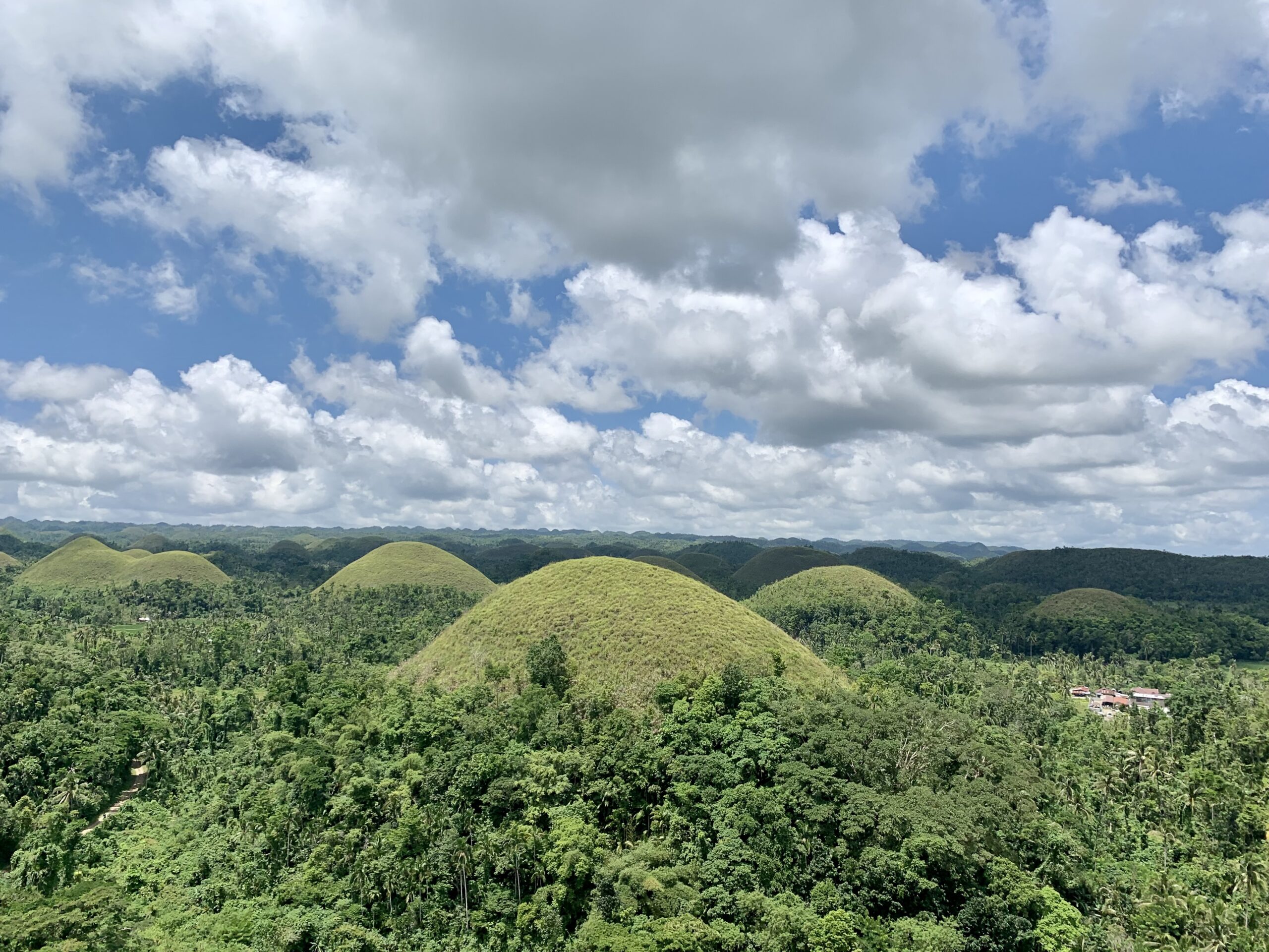 Με έναν οδηγό μια μέρα είναι αρκετή για να περιηγηθείτε στο Bohol. Η πρώτη μας στάση οι «σοκολατένιοι» λόφοι. Στη μέση των ορυζώνων περίπου 1268 κωνικοί, σχεδόν όμοιοι, λόφοι σε απόσταση 50 τετρ. χλμ., ξεπροβάλλουν πράσινοι το χειμώνα και σοκολατένιοι το καλοκαίρι. Ένα θέαμα που σου κόβει την ανάσα.