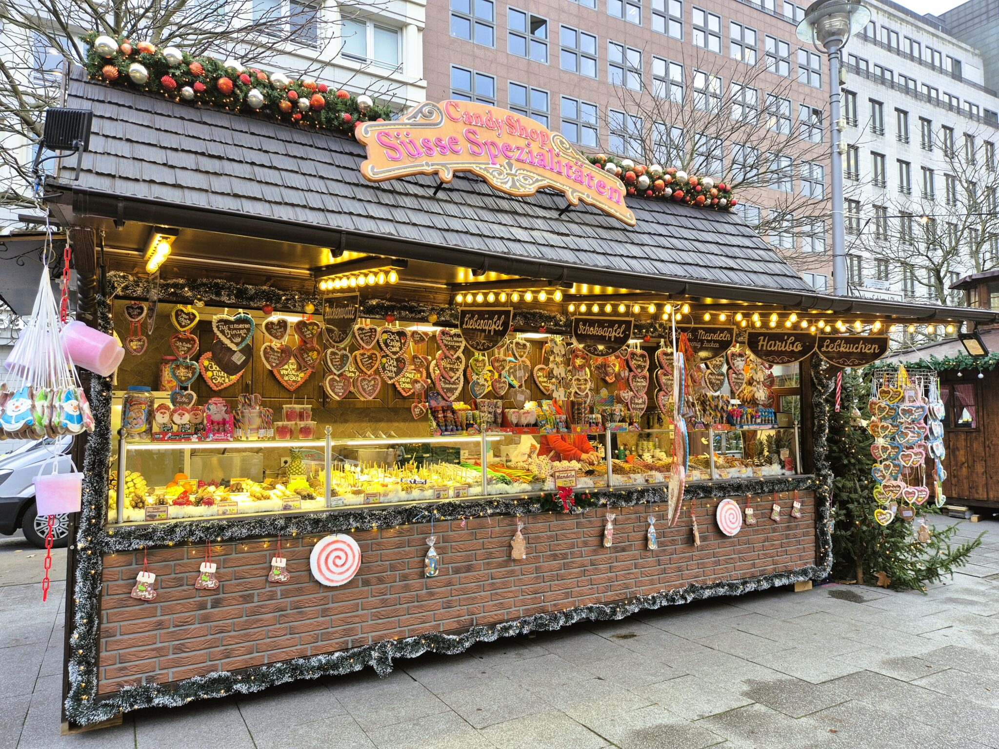 Εν μέσω της μαγευτικής ατμόσφαιρας που δημιουργούν light installations όπως αστέρια και νιφάδες όλων των μεγεθών που προβάλλονται πάνω στις πτέρυγες των ιστορικών κτηρίων, βρίσκεστε στο κατάλληλο σημείο για να αναζητήσετε τα πιο ξεχωριστά χριστουγεννιάτικα στολίδια και μοναδικά δώρα όπως ξύλινα παιχνίδια, πίνακες, χειροποίητα πλεχτά αξεσουάρ για το κρύο αλλά και παραδοσιακά εδέσματα και τοπικές σπεσιαλιτέ από διάφορες περιοχές της Γερμανίας, πάντα συνοδευόμενα από ζεστό αρωματικό κρασί και παραδοσιακό Eggnog.