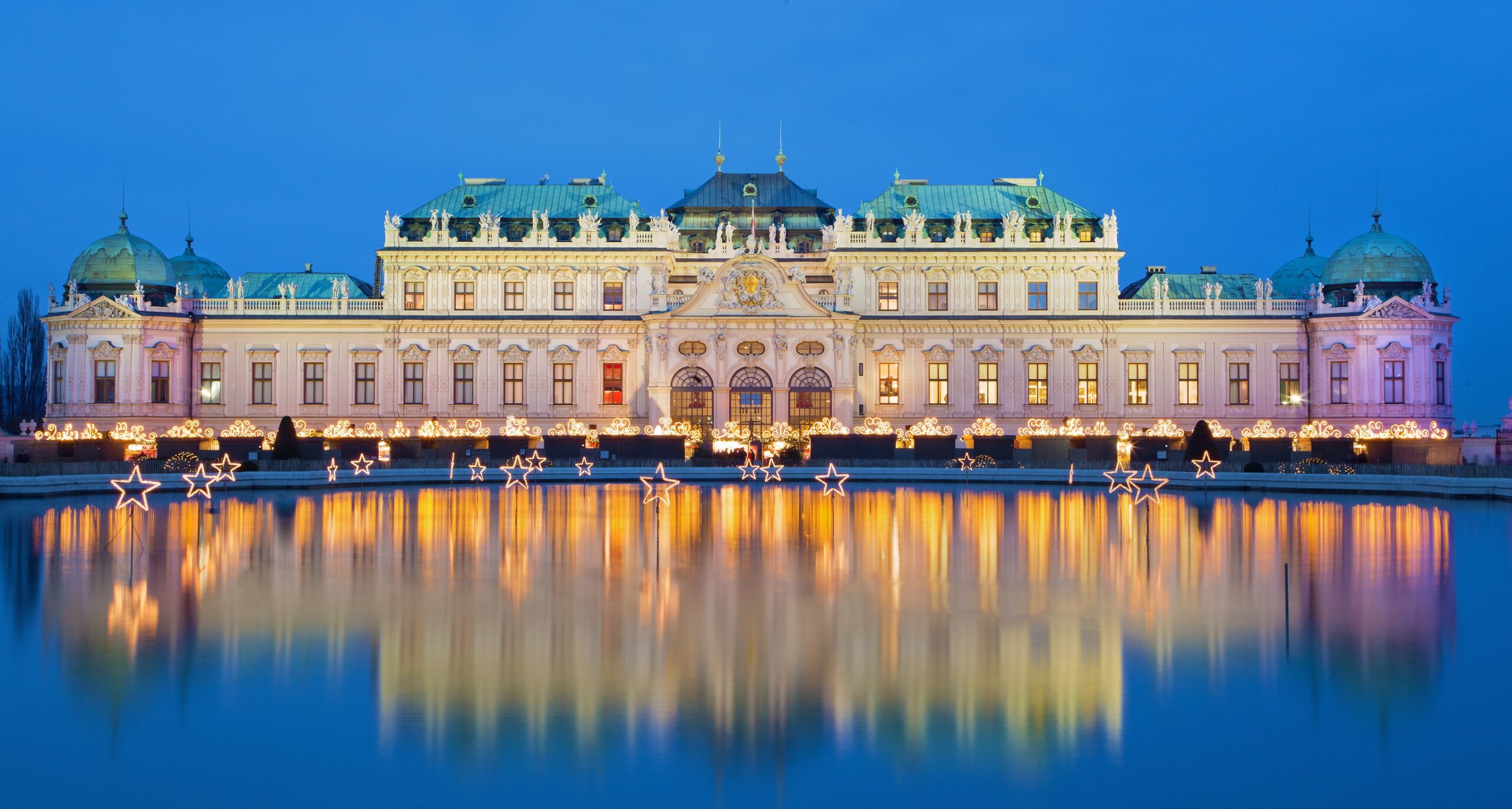 Ωστόσο, την περίοδο των γιορτών υπάρχει ακόμα ένας λόγος για να περάσετε από το εντυπωσιακό Belvedere με τους πανέμορφους κήπους και τη μικρή λιμνούλα που αποτελεί ένα πραγματικά μαγευτικό σήμα κατατεθέν του κτίσματος. Ο στολισμός στο Belvedere είναι τουλάχιστον θεαματικός και οι λαμπερές αντικατοπτρίσεις που καθρεφτίζονται στο νερό της λίμνης δημιουργούν ένα σκηνικό παραμυθένιο.