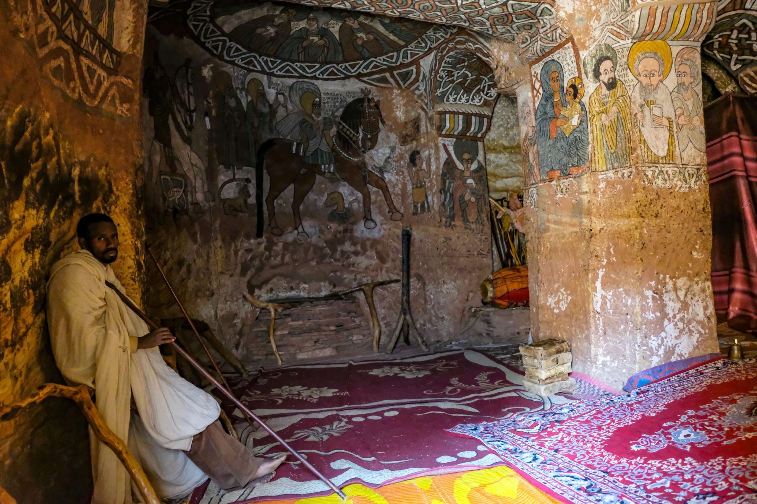 Αξιοσημείωτο δε, δεν είναι μόνο το γεγονός ότι είναι λαξευμένη στον ψηλό βράχο, αλλά και ότι στο εσωτερικό της υπάρχουν λαξευμένες κολώνες, καμάρες και τρούλοι καθώς και εξαιρετικά καλοδιατηρημένες τοιχογραφίες. Οι τοιχογραφίες χρονολογούνται από την πρώιμη εποχή του Χριστιανισμού στην Αιθιοπία περίπου τον 6ο αιώνα. Η οροφή του σπηλαίου καλύπτεται από δύο όμορφες εικονογραφίες, με περίπλοκα σχέδια, θρησκευτικές εικόνες και τα πρόσωπα των εννέα από τους δώδεκα αποστόλους ενώ άλλες τοιχογραφίες εντός της εκκλησίας απεικονίζουν σκηνές από την Παλαιά Διαθήκη. Οι τοιχογραφίες δημιουργήθηκαν με λίπος ζώων και χρώμα από λουλούδια, φρούτα και ορυκτά και όλες τους είναι σε πολύ καλή κατάσταση λόγω του ξηρού αέρα και της έλλειψης υγρασίας. Εκτός από τις υπέροχες τοιχογραφίες η εκκλησία φιλοξενεί και μια Ορθόδοξη Βίβλο με εικόνες, τα φύλλα τις οποίας έχουν κατασκευαστεί από δέρμα κατσίκας.