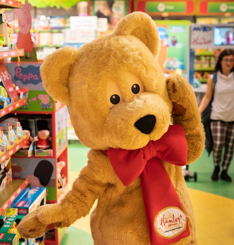 Το μεγάλο, εξαώροφο κατάστημα που καλύπτει τα νούμερα 188 – 196 της οδού Regent Street, ενός από τους πιο γνωστούς εμπορικούς δρόμους της πρωτεύουσας, άνοιξε το 1981 και αποτελεί το ζωντανό όνειρο κάθε μικρού και μεγάλου παιδιού που επιθυμεί διακαώς ένα παιχνίδι. Είτε αυτό είναι ένα λούτρινο κουκλάκι (τα αρκουδάκια του Hamleys με το κόκκινο παπιγιόν στον λαιμό είναι σήμα-κατατεθέν του brand) είτε μία περίτεχνη κατασκευή Lego με χιλιάδες κομμάτια. Το πολύχρωμο τμήμα σοκολάτας και ζαχαρωτών στον τελευταίο όροφο θα κλέψει την καρδιά ακόμα και εκείνων που δε δηλώνουν φαν των γλυκών.