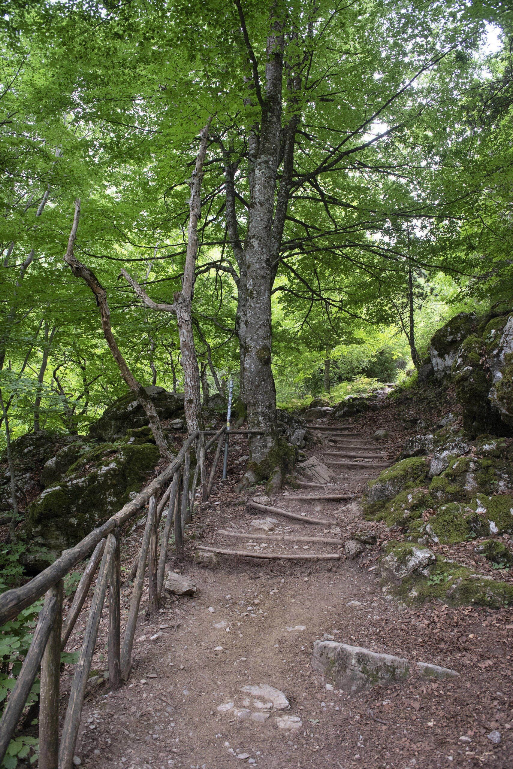 Ένα τοπίο πνιγμένο στη φύση και στα τρεχούμενα νερά. Θα ξεκινήσετε από τα Πριόνια, από όπου περνά και το διεθνές μονοπάτι Ε4, θα σταματήσετε στο μοναστήρι του Αγίου Διονυσίου, του 15ου αιώνα, και από εκεί θα συνεχίσετε στο Σπήλαιο του Αγίου Διονυσίου. Μπορείτε να επιλέξετε την εύκολη διαδρομή ή αυτή της μέτριας δυσκολίας, τα 6 ή τα 11,5 χλμ. αντίστοιχα, και στις δύο περιπτώσεις θα καταλήξετε στο Λιτόχωρο ή μπορείτε να κάνετε τη διαδρομή ανάποδα. Μπορείτε, ακόμα, να βάλετε στόχο το οροπέδιο των Μουσών και το εκκλησάκι του Προφήτη Ηλία και από εκεί τις Κορυφές ή το Στεφάνι, την ορθοπλαγιά που λέγεται ότι ήταν ο θρόνος του Δία.