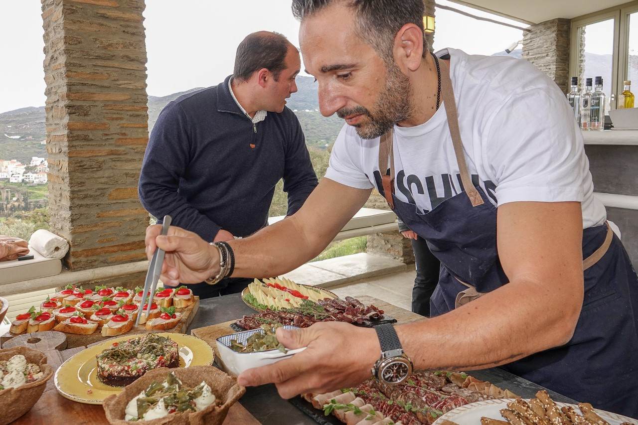 Με έμπνευση από τα καταπληκτικά προϊόντα του νησιού, τυροκομικά, ψαρικά, αλλαντικά, ο διάσημος Ελληνοαμερικανός σεφ Νίκ Πουλμέντης, ήλθε ειδικά από τη Νέα Υόρκη, όπου διαπρέπει, για να στηρίξει την προσπάθεια του νησιού. Σε συνεργασία με Ανδριώτες σεφ, δημιούργησε κάποια από τα signature πιάτα του -μαύρος ταραμάς και το σούσι με αμπελόφυλλο-, που προσφέρθηκαν μαζί με παραδοσιακές ανδριώτικες σπεσιαλιτέ όπως η «φρουτάλια» (ή φουρτάλια).