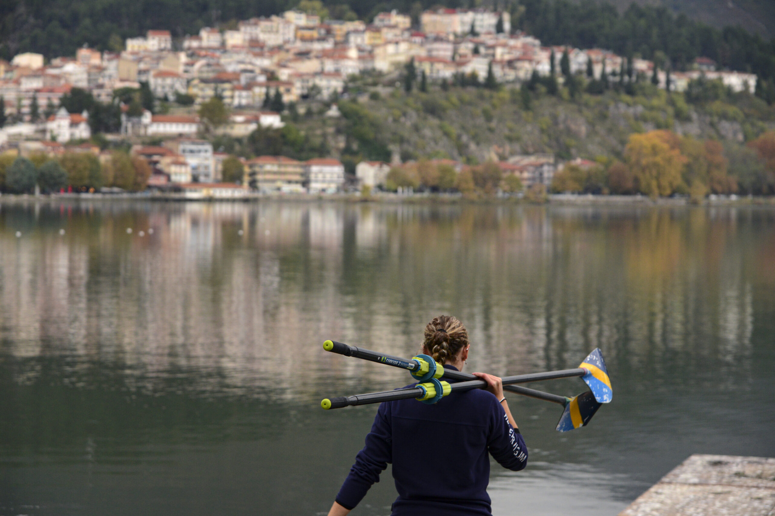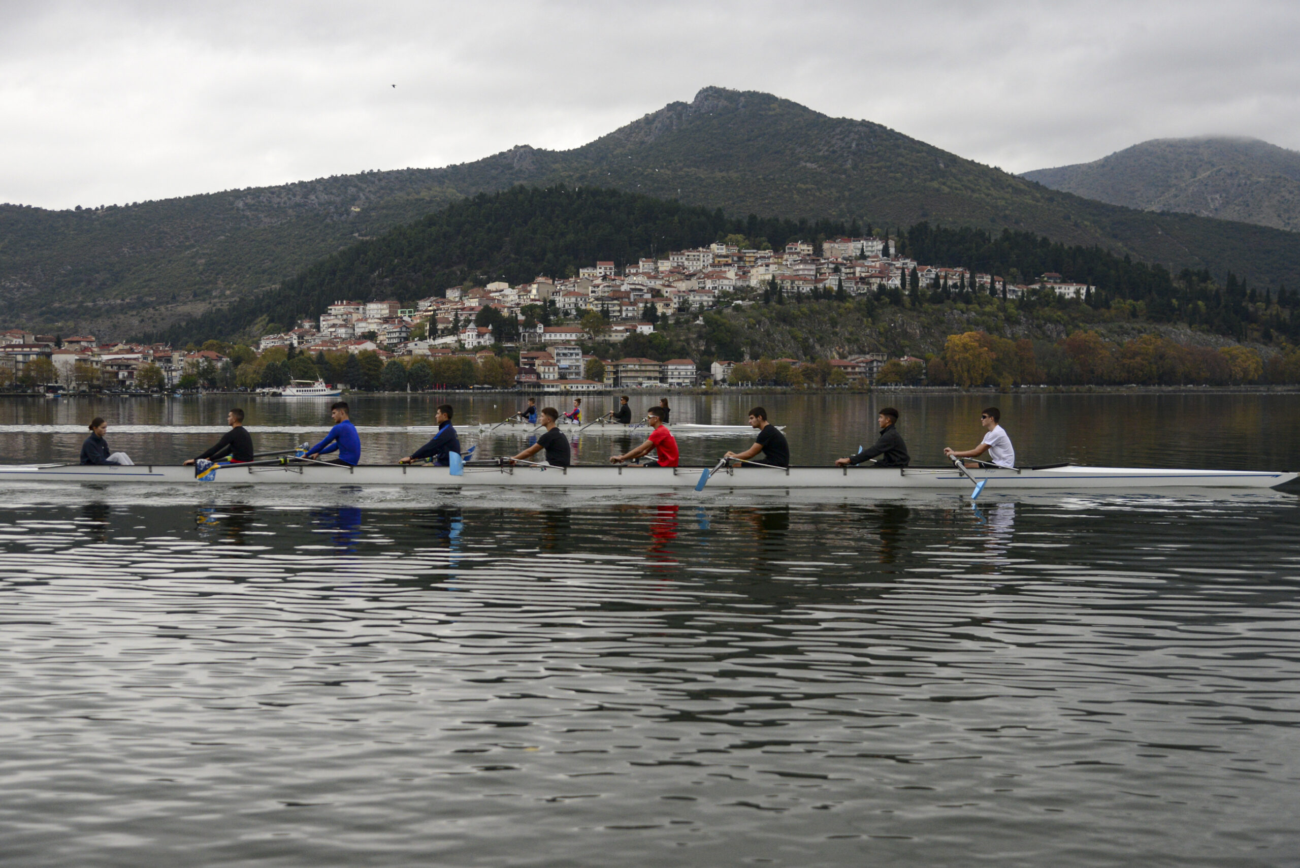 Είναι νωρίς το απόγευμα. Σιγοψιχαλίζει. Έχουμε δώσει ραντεβού στο Ναυτικό Όμιλο Καστοριάς για να μιλήσουμε με τα παιδιά αλλά και με τον προπονητή, της ομάδας Κωπηλασίας της Καστοριάς. Μαζί με τον Ηλία Κοσίντα, τον φωτογράφο, και αφού έχουν μεσολαβήσει διάφορες στάσεις στην πόλη αλλά και στην «γυρολιμνιά», όπως λένε την περιμετρική βόλτα στη χερσόνησο της λίμνης, η οποία ενώνει τη νότια πλευρά της, με τη βόρεια, φθάνουμε στον Όμιλο.