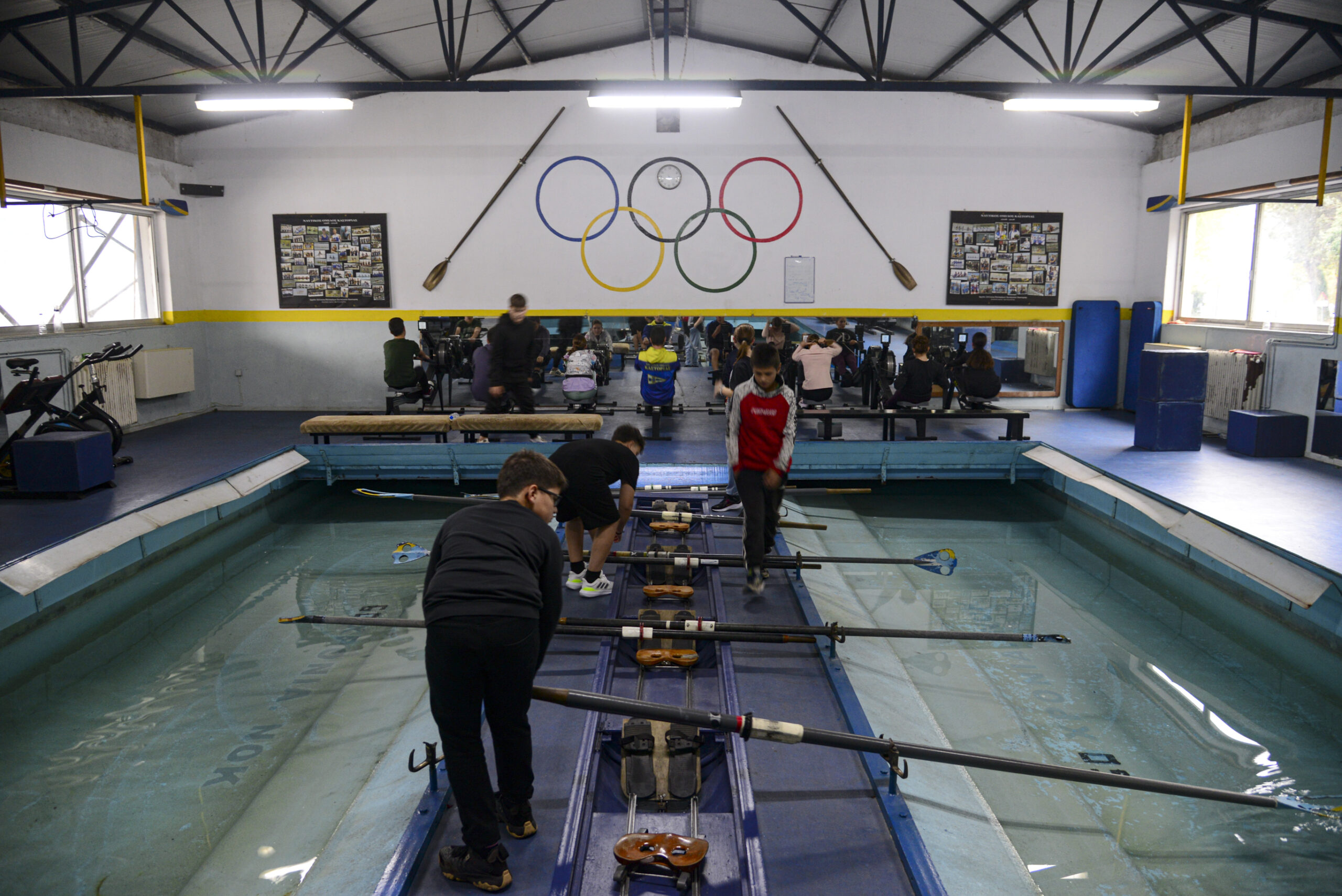 Ο χρόνος περνά και το προαύλιο γεμίζει με παιδιά που ανάλογα με την ηλικία τους, θα κάνουν και την αντίστοιχη προπόνηση. Κάποιοι από αυτούς, οι μικρότεροι, θα παραμείνουν στις κλειστές εγκαταστάσεις, ενώ οι υπόλοιποι θα βγουν στη λίμνη. Με τις οδηγίες του προπονητή οι αθλητές μεταφέρουν τις κωπηλατικές λέμβους στη λίμνη και προετοιμάζονται να ξεκινήσουν. Είναι μία σχετικά χρονοβόρα διαδικασία, ωστόσο οι κινήσεις τους είναι συγχρονισμένες και σταθερές. Εκτός των άλλων, στο νερό μεταφέρουν και ένα πολύ εντυπωσιακό, μεγάλο σκάφος, την οκτάκωπο, στην οποία επιβαίνουν οι 8 αθλητές και ο πηδαλιούχος.