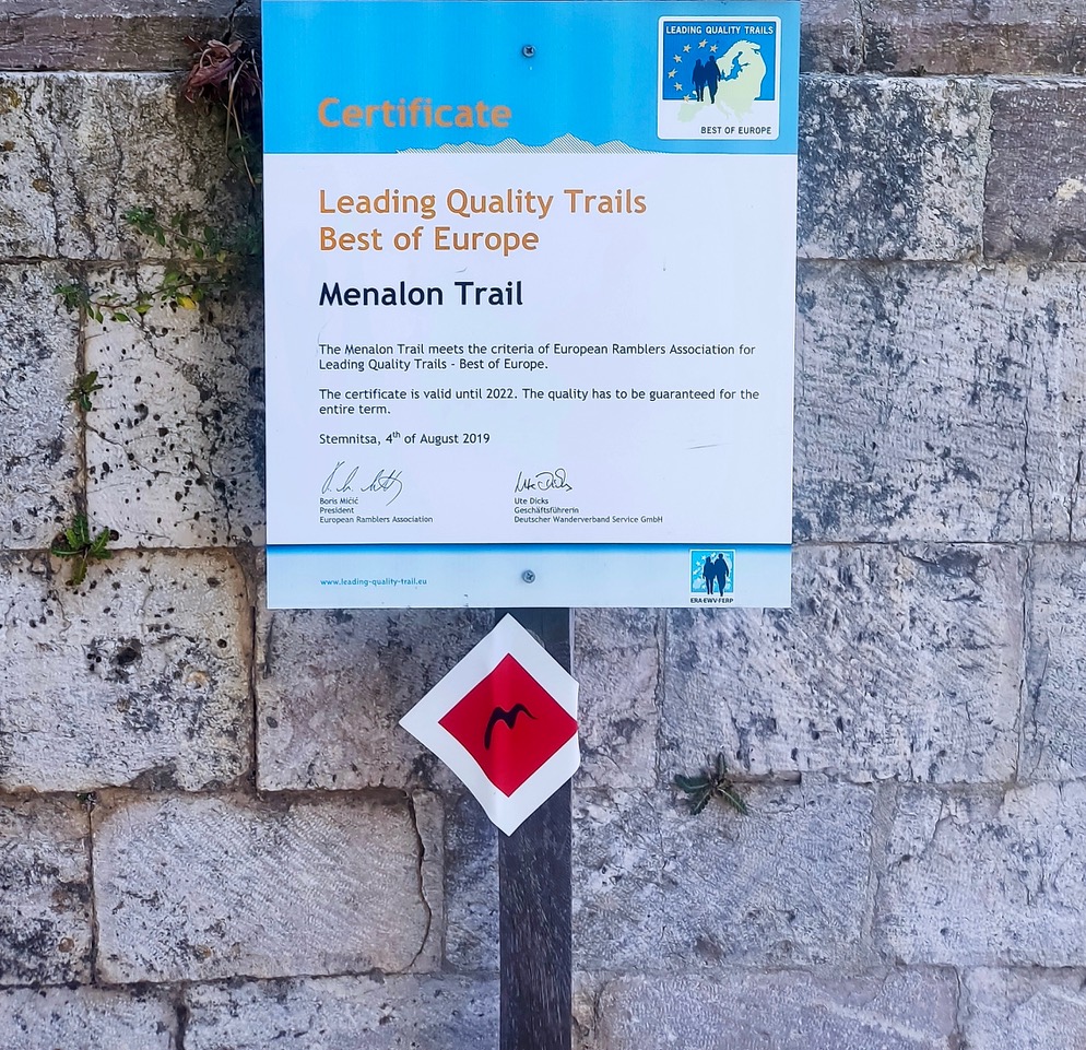 Το Menalon Trail δόθηκε στο κοινό της πεζοπορίας τον Μάιο του 2015. Έφερε και εξακολουθεί να φέρνει πνοή ουσιαστικής τουριστικής ανάπτυξης στα χωριά που συνδέει. Έχει πιστοποίηση ποιότητας από την Πανευρωπαϊκή Συνομοσπονδία Πεζοπορίας (ERA) ως Leading Quality Trail-Best of Europe στην Ελλάδα και τα καλά νέα είναι ότι έχει αναδειχθεί ως κορυφαίος προορισμός για τους λάτρεις της φύσης, της πεζοπορίας και της αυθεντικής εμπειρίας.