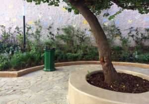 Για τη δημιουργία αυτής της νέας ανάσας πρασίνου, χρειάστηκε να απομακρυνθούν τοιχία και τσιμεντόλιθοι, ενώ στη θέση τους δημιουργήθηκαν ανάγλυφοι χώροι με πλούσια φύτευση, ένα λειτουργικό δίκτυο διαδρόμων από οικολογικά υλικά για την καλύτερη διαχείριση του βρόχινου νερού, καθώς και όμορφοι καθιστικοί χώροι που προσκαλούν τον επισκέπτη για στάση και ξεκούραση.