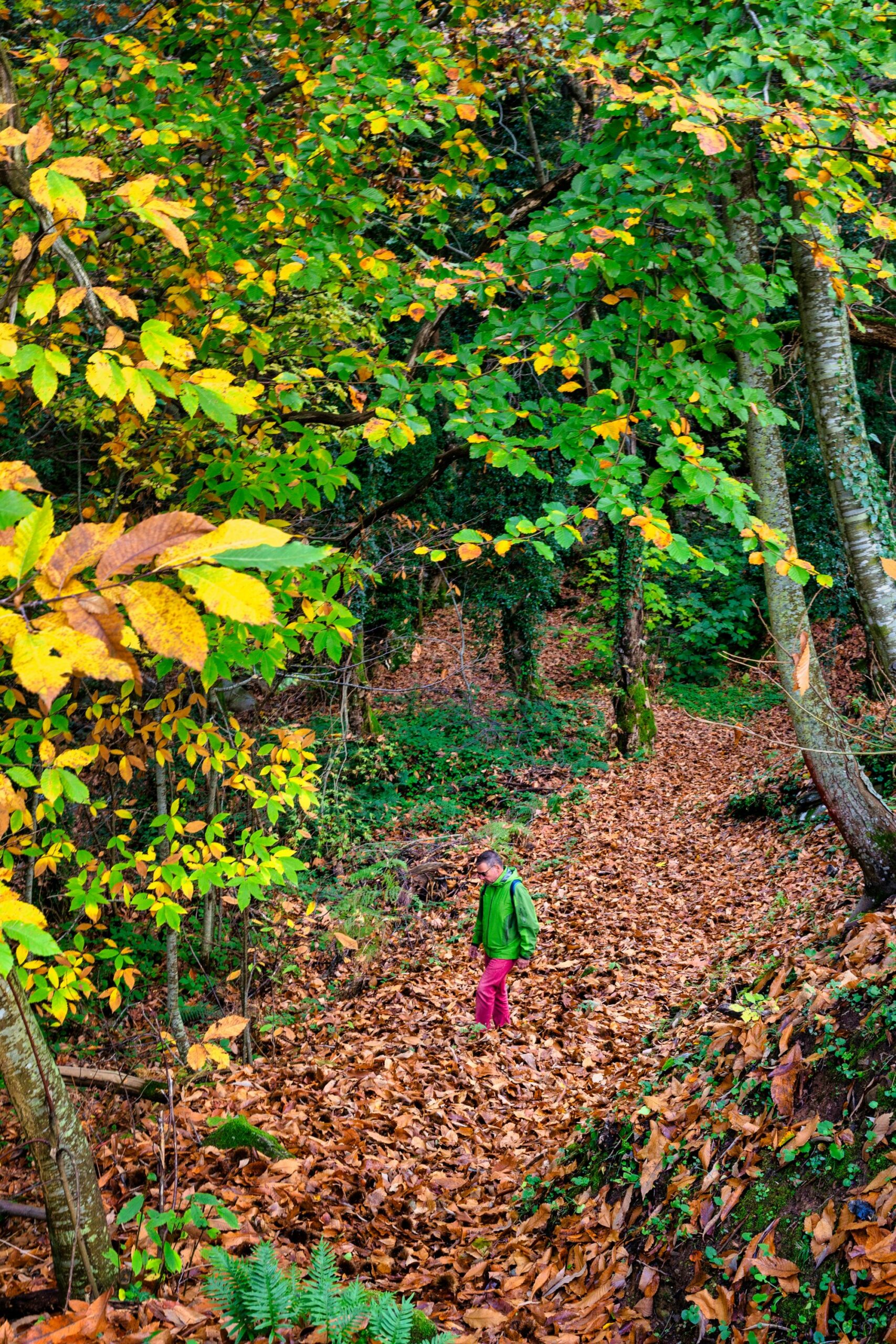 Θα ακολουθήσετε μια διαδρομή στρωμένη αυτή την εποχή με ξερά φύλλα σε κάθε καφεκίτρινη απόχρωση και πεσμένα κάστανα στα ακάνθινα κουκούλια τους, όπου το πυκνό δασικό τοπίο με τις ψηλές οξιές συναντά καστανιές και πλατάνια, για να καταλήξει σε καλλιεργήσιμες εκτάσεις με μηλιές. Πολύ συχνά η ομίχλη κρύβει τη θέα στις καταπράσινες πλαγιές για να σας την αποκαλύψει λίγα μέτρα πιο πέρα και ο ήχος των νερών μπλέκεται με εκείνους των πουλιών. Αυτό που κόβει την ανάσα είναι οι καταρράκτες που κρύβονται στην πυκνή βλάστηση και εμφανίζονται ξαφνικά μπροστά σας, με έναν από αυτούς να φτάνει τα 15 μέτρα. Είναι αυτοί που δικαίως δίνουν στο μονοπάτι το όνομά του, ενώ οι διαδοχικές βάθρες που σχηματίζονται, δελεάζουν για μια αναζωογονητική βουτιά στα δροσερά νερά τους.
