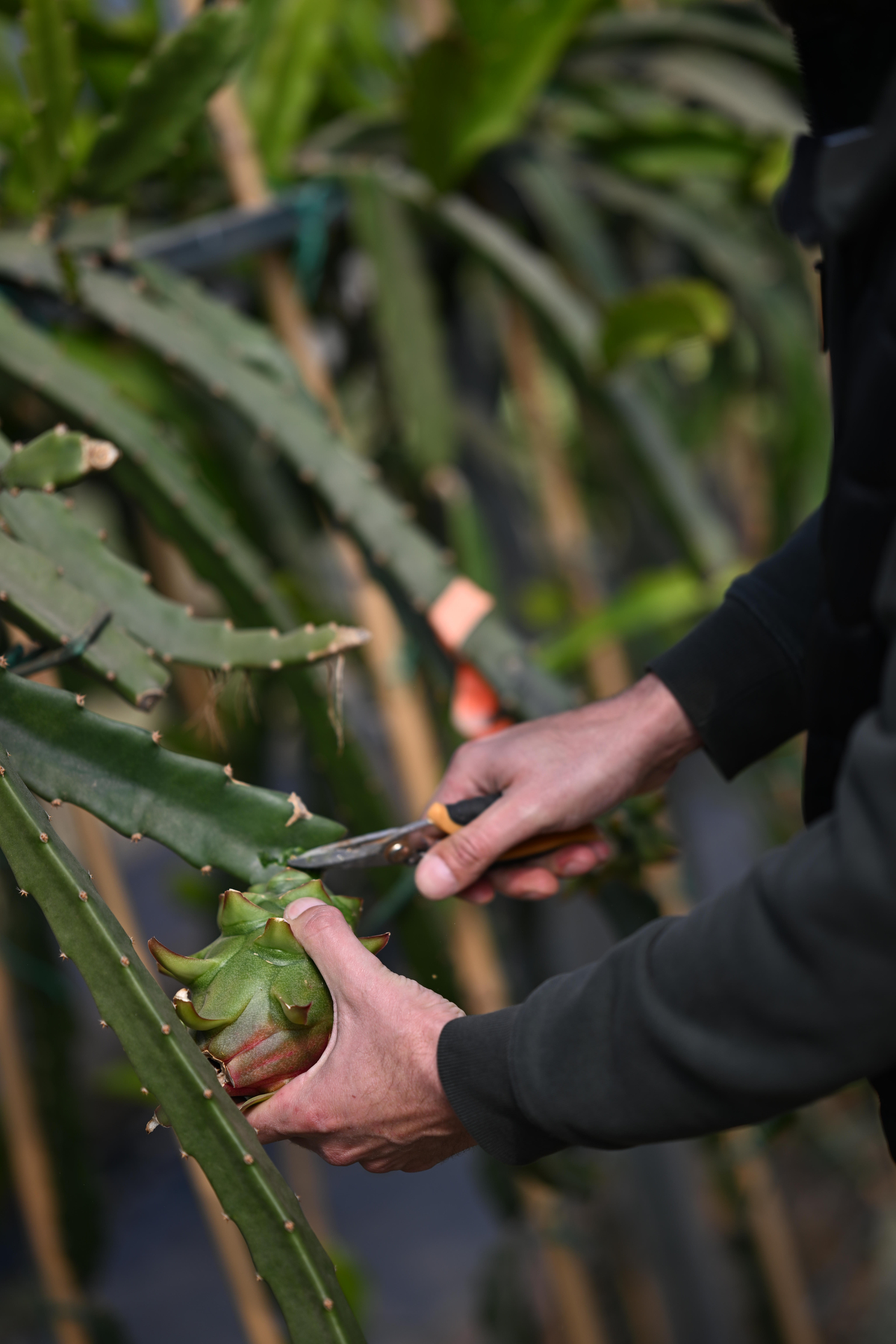 Ο Κωνσταντίνος καλλιεργεί αρκετά είδη φυτών αλλά κυρίως ασχολείται με την καλλιέργεια επιφυτικών κάκτων με καταγωγή τη Νότια και Κεντρική Αμερική. Στη φύση, οι ιδιαίτεροι αυτοί κάκτοι αναρριχώνται σε δέντρα και βράχους με τα μεγαλοπρεπή τους άνθη να ανοίγουν το σούρουπο και να ζουν μόνο για ένα βράδυ. Τα άνθη που γονιμοποιούνται μάς χαρίζουν ιδιαίτερα φρούτα, όπου ένα είδος εξ’ αυτών είναι και το Dragon fruit -ένα φρούτο που καλλιεργείται εντατικά στην Ασία. Ο Κωνσταντίνος επιλέγει να καλλιεργεί τις πιο ιδιαίτερες ποικιλίες του φρούτου αυτού, τόσο σε γεύση όσο και σε εμφάνιση. Μακριά από τα πρότυπα της μαζικής παραγωγής, καλλιεργεί σε μικρή κλίμακα, δίνοντας έμφαση στην ποιότητα και επιδιώκοντας να προσφέρει μια εμπειρία μέσα από την κατανάλωση κάθε καρπού.