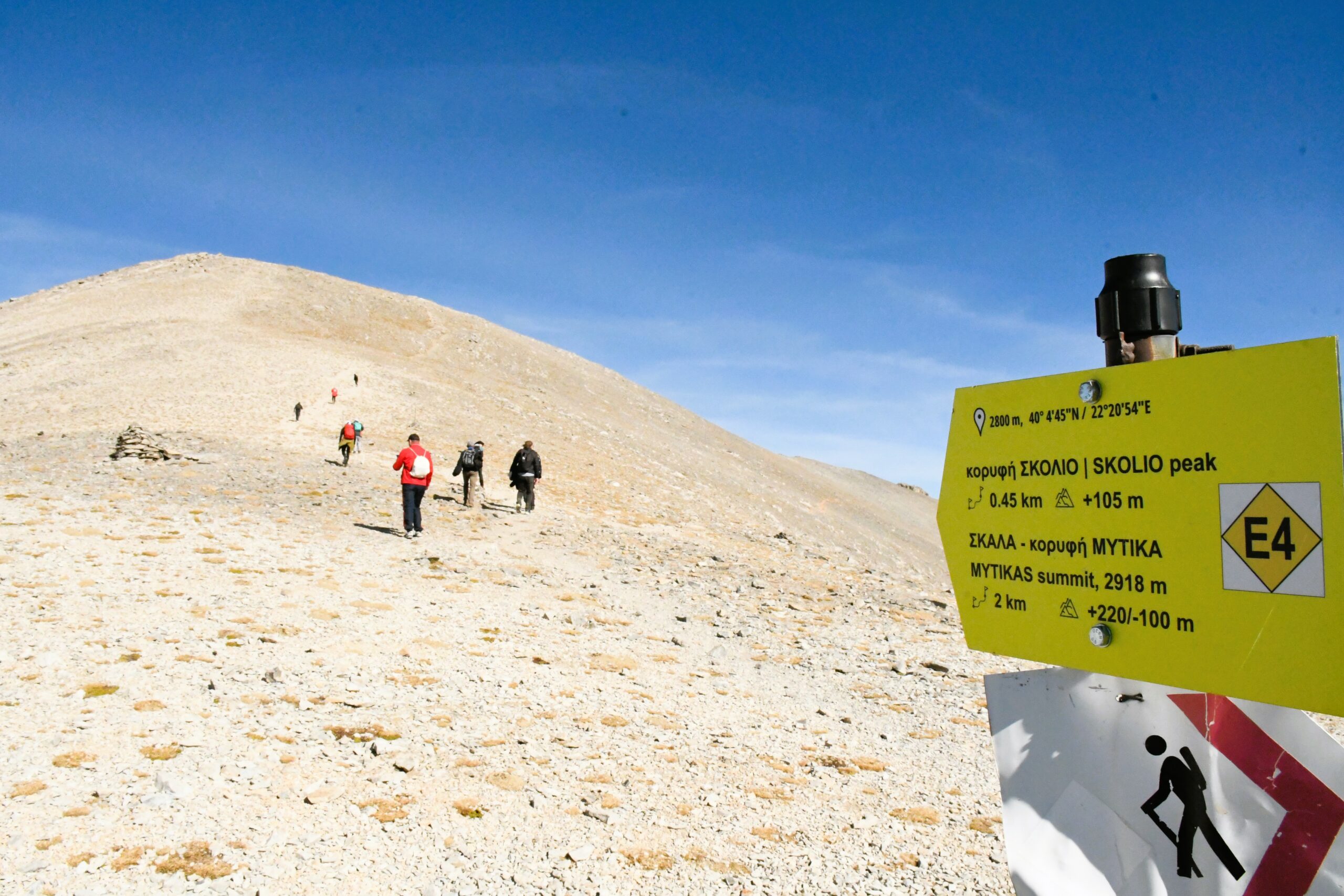 Από το καταφύγιο, το μονοπάτι ανηφορίζει προς τη Σκάλα, ενώ ακολουθεί η διαβόητη Κακόσκαλα, ένα βραχώδες και εκτεθειμένο πέρασμα που οδηγεί τελικά στον Μύτικα στα 2.918 μέτρα. Αυτό το τμήμα της διαδρομής απαιτεί ιδιαίτερη προσοχή και καλή φυσική κατάσταση, καθώς έχει απότομο έδαφος και έντονες κλίσεις. Η διαδρομή είναι συνολικού μήκους 14,5 χιλιομέτρων και απαιτεί περίπου 10-12 ώρες για να ολοκληρωθεί. Το μονοπάτι είναι καλά σηματοδοτημένο με ξύλινους και σιδερένιους πασσάλους, ύψους 60 εκ. και 2 μ. αντίστοιχα, και φέρει πινακίδες με τη σήμανση Ε4. Στα χαμηλότερα υψόμετρα, πρόσθετα ταμπελάκια στους κορμούς των δέντρων προσφέρουν καθοδήγηση.