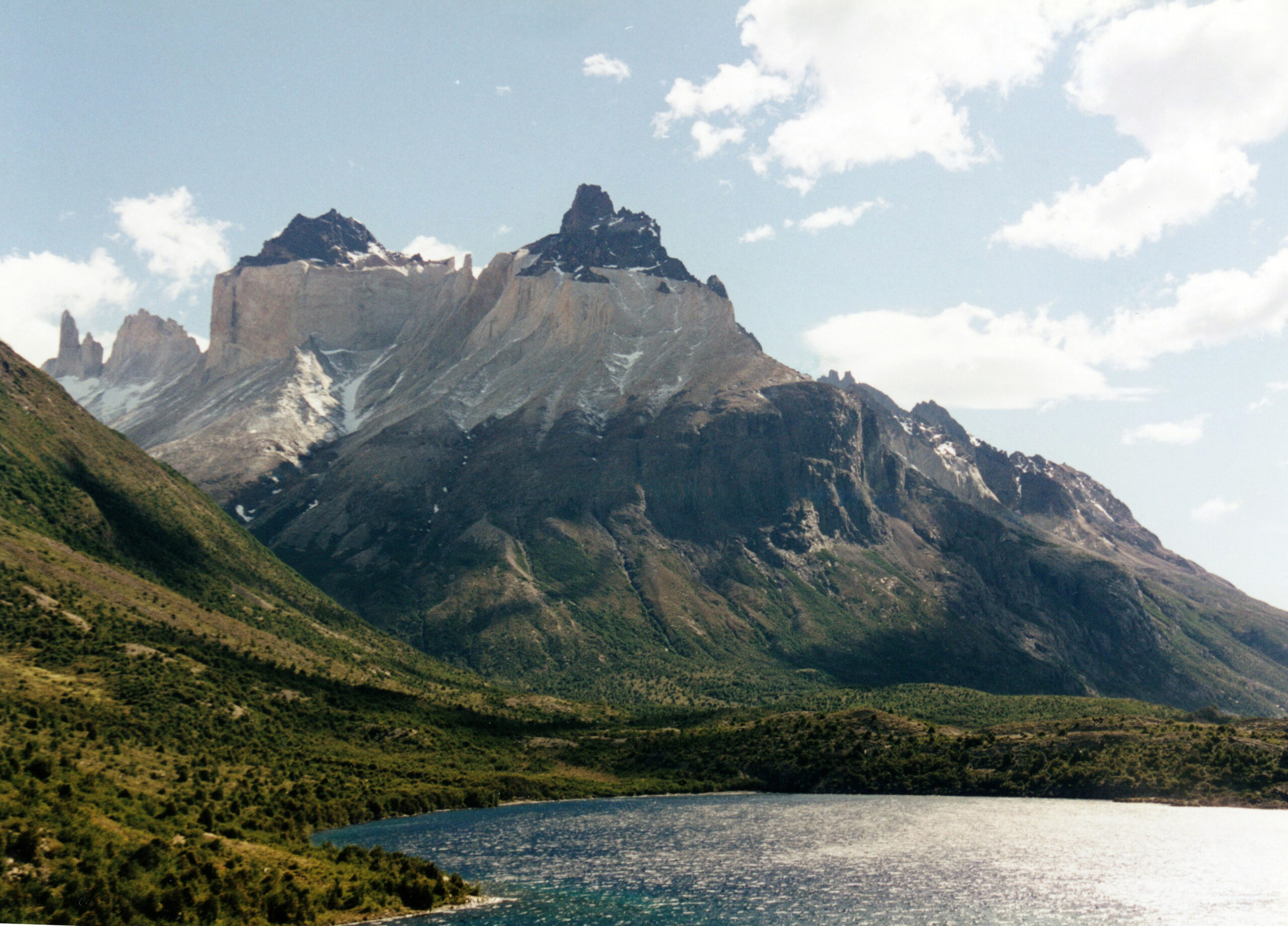 Το τελευταίο τμήμα της ανάβασης είναι ιδιαίτερα δύσκολο. Φτάνοντας όμως στη βάση, η κούραση εξαφανίζεται μπροστά στη μοναδική θέα των τριών τεράστιων γρανιτένιων κορυφών που υψώνονται επιβλητικά πάνω από μια τιρκουάζ λίμνη. Ξεκουραζόμαστε για λίγη ώρα σε αυτό το γραφικό περιβάλλον, τρώμε κάτι πρόχειρο και στη συνέχεια παίρνουμε τον δρόμο της επιστροφής.