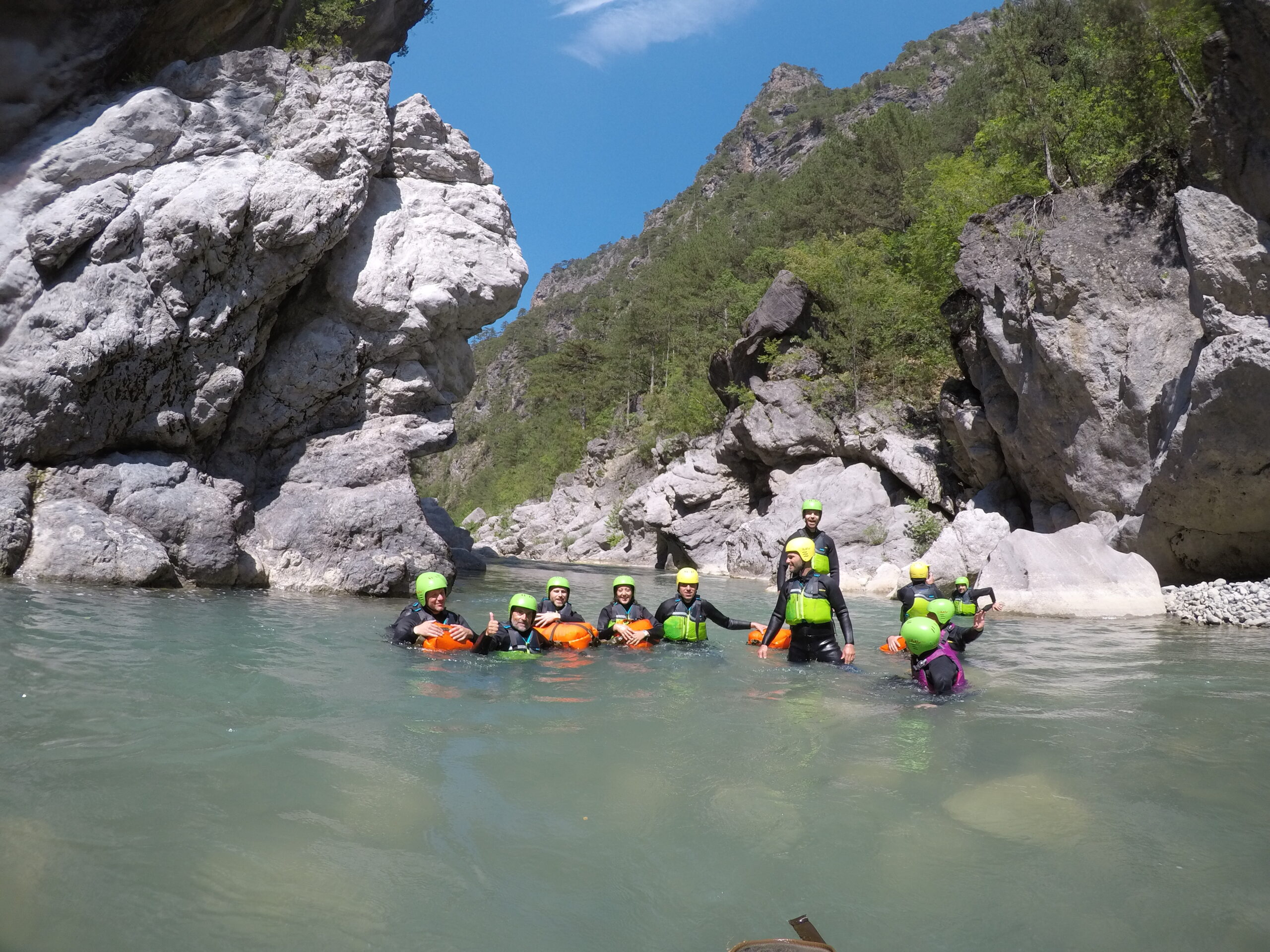 Σε αυτό το σημείο ξεκινά η χαράδρα του Αώου, το ποτάμι στενεύει και καθώς κατά τους καλοκαιρινούς μήνες κατεβαίνει η στάθμη του νερού, γίνεται με απόλυτη ασφάλεια η πρώτη βουτιά. Ακόμα και οι πιο διστακτικοί βρίσκουν απίστευτα διασκεδαστική την όλη εμπειρία που θυμίζει waterpark. Σε άλλα σημεία περπατάς μέσα στο νερό, σε άλλα κολυμπάς σύμφωνα με τις οδηγίες, αλλού σκαρφαλώνεις σε κάποια βράχια, αλλού πεζοπορείς στις όχθες του ποταμού, ενώ εκτός από το σωσίβιο και τη στολή που δίνουν επιπλέον άνωση, υπάρχει πάντα η επίβλεψη των εκπαιδευμένων οδηγών: ένας για γκρουπ έως 6 άτομα και απαραιτήτως δύο για 7 και περισσότερους συμμετέχοντες.
