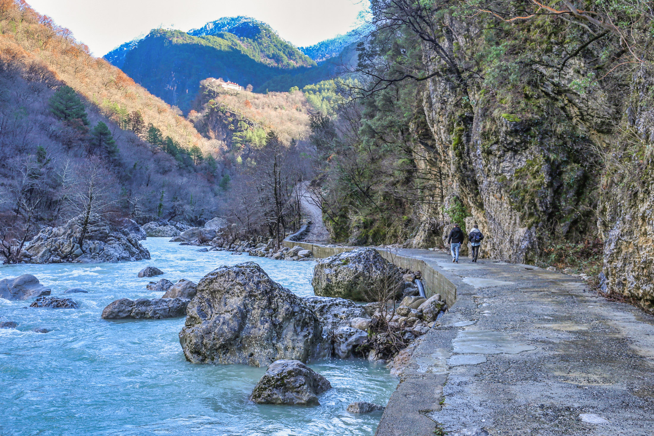 Το 70% της δραστηριότητας γίνεται μέσα στο νερό και καθώς απολαμβάνεις το ξέγνοιαστο μπάνιο στις μεγάλες πισίνες με τα πεντακάθαρα νερά, κυκλωμένος από κατακόρυφες πλαγιές ύψους εκατοντάδων μέτρων και θεόρατα βράχια σμιλεμένα και σφηνωμένα από την δύναμη του νερού, νιώθεις το μεγαλείο του Αώου να σε συνεπαίρνει. Ούτε που θα καταλάβετε πώς θα περάσουν περίπου 5 ώρες μέσα στην χαράδρα ως το σημείο τερματισμού, από το οποίο 45′ λεπτά περπάτημα σε χωματόδρομο σας φέρνει πάλι εκεί που σας άφησε το αυτοκίνητο.