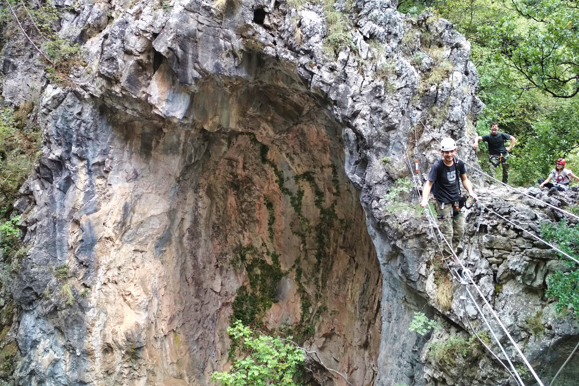 Όσοι θέλουν να δοκιμάσουν μια δραστηριότητα μέτριας δυσκολίας, που συνδυάζει την ευχαρίστηση της πεζοπορίας και της αναρρίχησης πλάι στο ποτάμι με τη συναρπαστική αίσθηση ότι σχεδόν ακροβατείς πάνω από τη χαράδρα του Αώου, θα δουν τη Via Ferrata ως το τέλειο extreme sport. Κυριολεκτικά, ο ιταλικός όρος σημαίνει «Ο δρόμος του σιδήρου» και αυτό είναι και το κύριο χαρακτηριστικό της διαδρομής, τα συρματόσχοινα και τα σιδερένια σκαλοπάτια, που βοηθούν να ολοκληρώσεις μια διαδρομή με αρκετή κλίση σε κάποια σημεία, διασχίζοντας δυο γέφυρες, σε ύψος ως και 35 μέτρα πάνω από το ποτάμι.