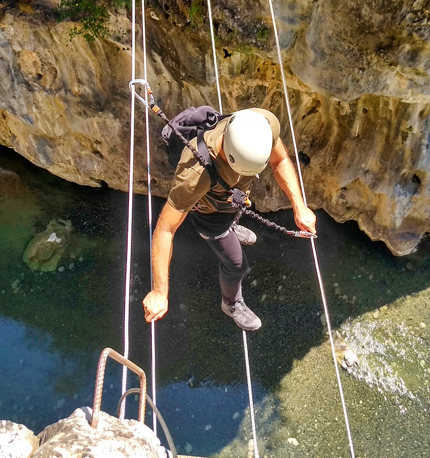 Καταρχάς, θα πρέπει να διευκρινιστεί ότι η εμπειρία αντενδείκνυται για όσους έχουν υψοφοβία ή ακροφοβία, αλλά κατά τα άλλα πέρα από μετρίου επιπέδου φυσική κατάσταση, το μόνο που απαιτείται είναι αθλητικά ρούχα και παπούτσια και ο κατάλληλος εξοπλισμός. Αυτός παρέχεται από γραφεία που οργανώνουν outdoor activities και περιλαμβάνει κράνος, ζώνη μέσης, αποσβεστήρα ενέργειας, καραμπίνερ τύπου Κ, ενώ η διαδρομή ολοκληρώνεται μόνο με τη συνοδεία και την καθοδήγηση έμπειρου πιστοποιημένου οδηγού, ο οποίος θα σας εκπαιδεύσει επί τόπου στο πώς θα χρησιμοποιήσετε με ασφάλεια τον εξοπλισμό.