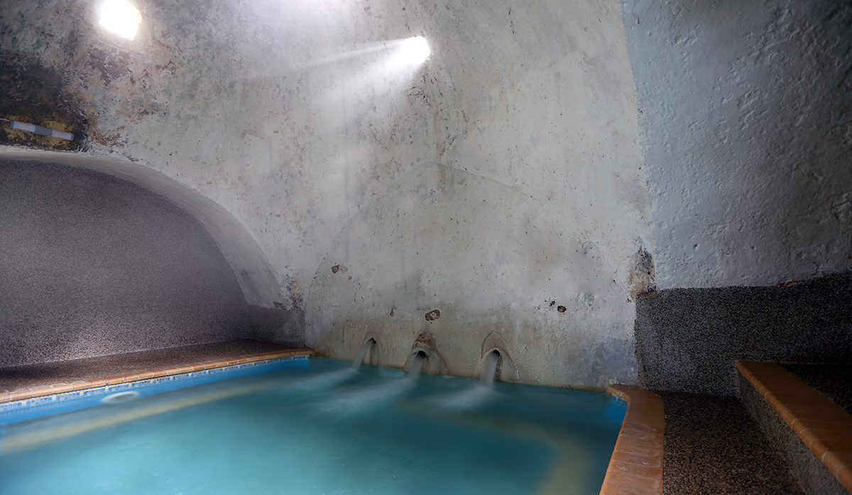 Το ζεστό νερό (έως 37 βαθμούς Κελσίου) χύνεται με πίεση στον κυκλικό λουτήρα, προσφέροντας ένα τέλειο υδρομασάζ. Οι υδρατμοί, σε συνδυασμό με το αμυδρό φως που εισέρχεται από τους μικρούς φεγγίτες του θόλου, δημιουργούν ένα ονειρικό περιβάλλον χαλάρωσης και ανακούφισης, προσφέροντας μοναδικές στιγμές στο μαρμάρινο πεζούλι και ευκαιρία για ένα εφιδρωτικό χαλαρωτικό ατμόλουτρο στο σώμα και στις αισθήσεις.