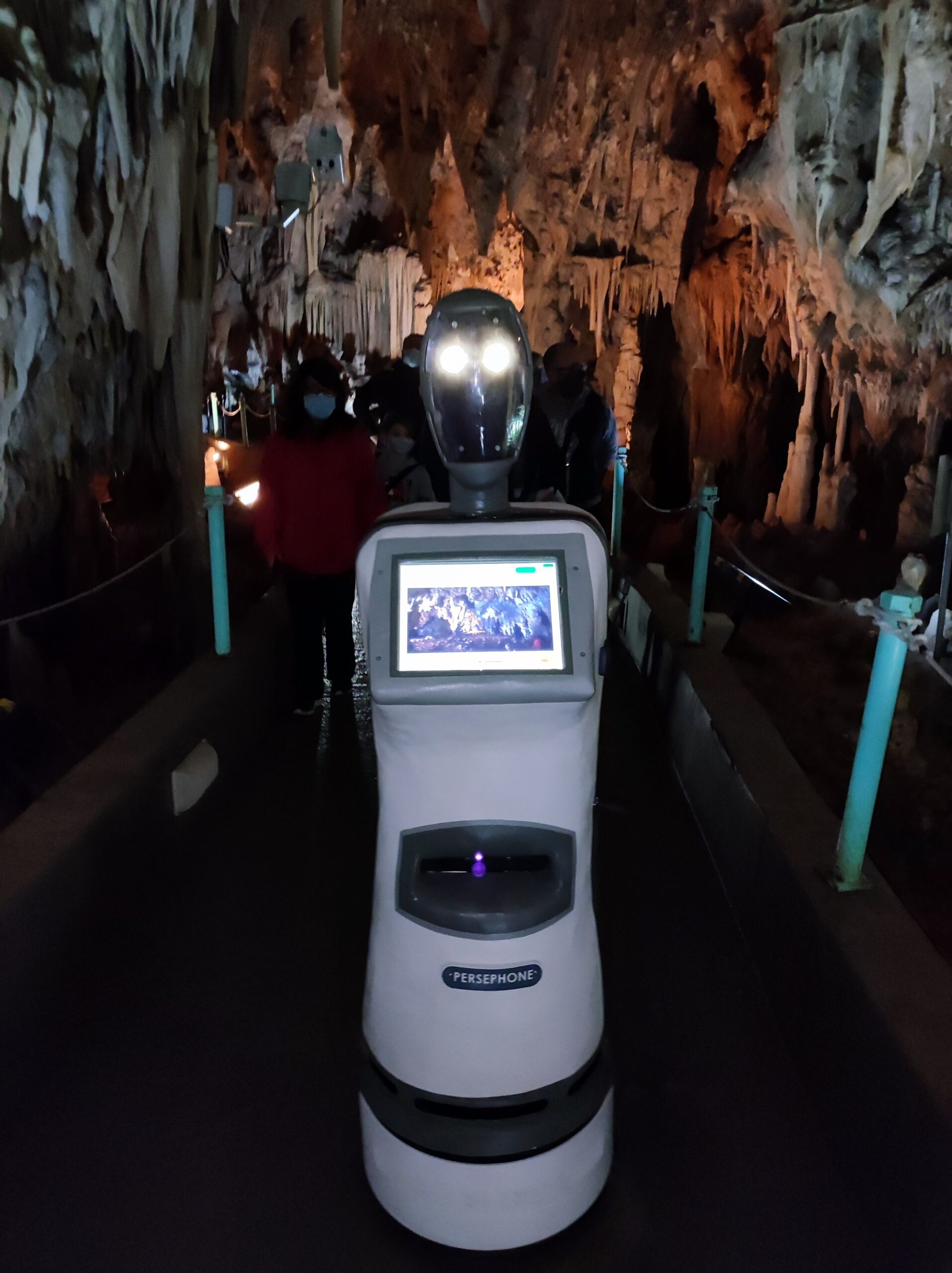 Το ρομπότ δεν ενημερώνει μόνο και δίνει πληροφορίες για το -εξαιρετικής ομορφιάς- σπήλαιο, αλλά απαντάει και στις ερωτήσεις των επισκεπτών που συνοδεύει, εκπλήσσοντάς τους ευχάριστα. Στο τέλος μάλιστα, πολλοί της «ζητούν» μία αναμνηστική selfie, που βέβαια δεν αρνείται.