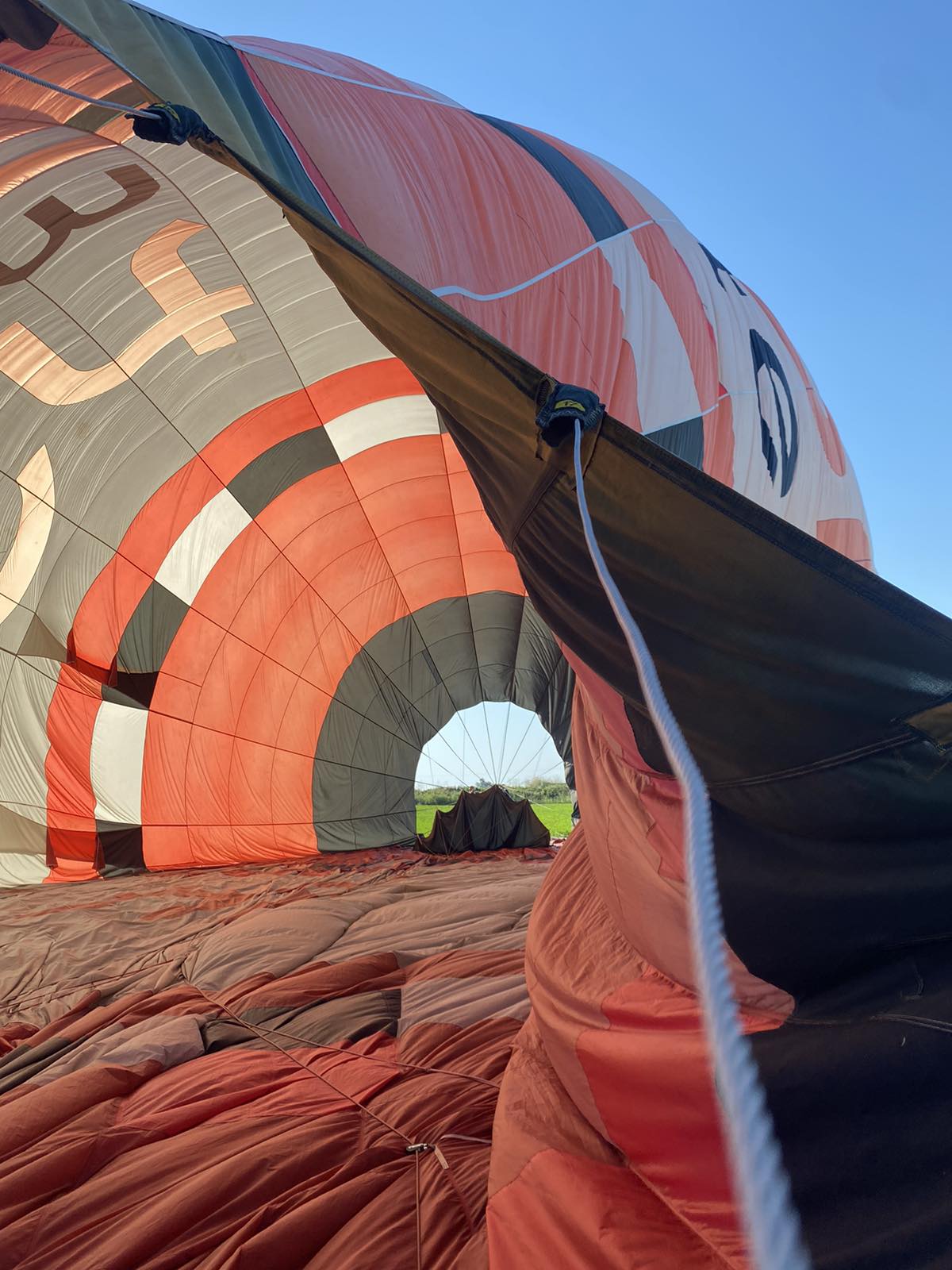 Με αυτή τη χιουμοριστική εικόνα κατά νου και με την πρωινή δροσιά να πλημμυρίζει μεθυστικά την ατμόσφαιρα, φτάνουμε στον χώρο απογείωσης του αερόστατου που θα μας πετούσε πάνω από την Πιερία. Σίγουρα, η θέα ενός τεράστιου ξαπλωμένου στο έδαφος μπαλονιού προκαλεί μια ευχάριστη προσμονή για την εμπειρία. Χρωματιστό και ογκώδες που φούσκωνε σταδιακά μαζί με ένα ειδικά προσαρμοσμένο καλάθι αρκετά μεγάλης χωρητικότητας ενωμένο με το υπόλοιπο τμήμα του, το αερόστατο γέμιζε σιγά σιγά με ζεστό αέρα και μετά από περίπου δέκα λεπτά συνεχούς κόπου, αγώνα και ιδρώτα ήταν σχεδόν έτοιμο για απογείωση.