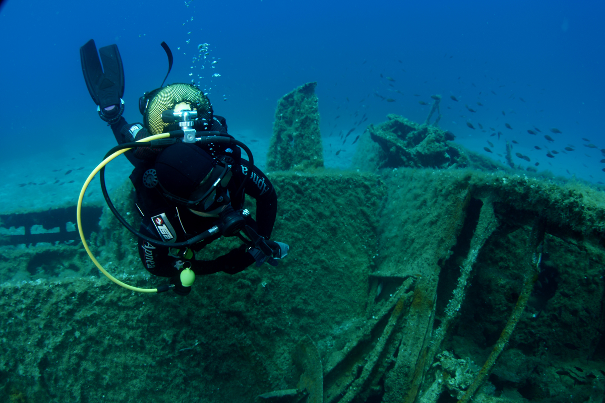 Ο ίδιος και οι επαγγελματίες συνεργάτες του, μπορούν να σας προσφέρουν μια μοναδική εμπειρία κατάδυσης σε κάποιο από τα πολεμικά -και όχι μόνο- ναυάγια του νησιού, ανάλογα με την εμπειρία σας. Οι καταδύσεις είναι απολύτως ασφαλείς και μπορούν να τις ακολουθήσουν άτομα κάθε ηλικίας. Δεν απαιτούν μυϊκή δύναμη, καθώς η υποβρύχια κολύμβηση είναι χαλαρή. Ωστόσο επιβάλλεται η καλή φυσική κατάσταση.