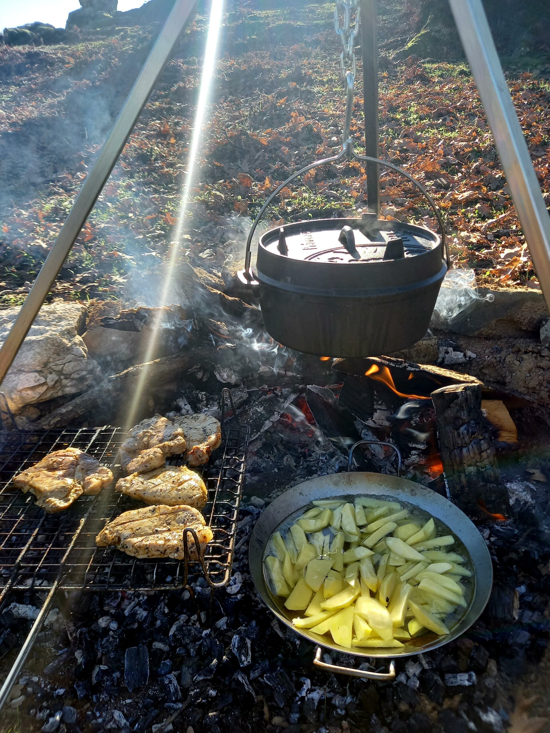 Στην ένα ξέφωτο, η υπαίθρια μαγειρική μετατρέπεται σε μια μοναδική εμπειρία που συνδέει τον επισκέπτη με τις πρωταρχικές ρίζες της γαστρονομίας. Με την καθοδήγηση έμπειρων οδηγών και τηρώντας αυστηρά πρωτόκολλα ασφαλείας, οι επισκέπτες μαθαίνουν να στήνουν την εστία τους σε ειδικά διαμορφωμένους χώρους, μακριά από την πυκνή βλάστηση και φυσικά μόνο σε περιόδους που επιτρέπεται η φωτιά. «Η μαγειρική στη φύση δεν είναι απλώς ένα γεύμα -είναι μια τελετουργία που απαιτεί σεβασμό στο περιβάλλον» εξηγεί ο Άρης, καθώς δείχνει πώς να συλλέγουμε με ασφάλεια αρωματικά βότανα της περιοχής. Τα τοπικά υλικά, από φρέσκα ψάρια της λιμνοθάλασσας μέχρι εποχιακά λαχανικά, μεταμορφώνονται σε γευστικές δημιουργίες κάτω από τη σκιά των αιωνόβιων δέντρων, ενώ η προσεκτική διαχείριση της φωτιάς και ο σχολαστικός καθαρισμός του χώρου μετά το πέρας της δραστηριότητας διασφαλίζουν την προστασία του δάσους.