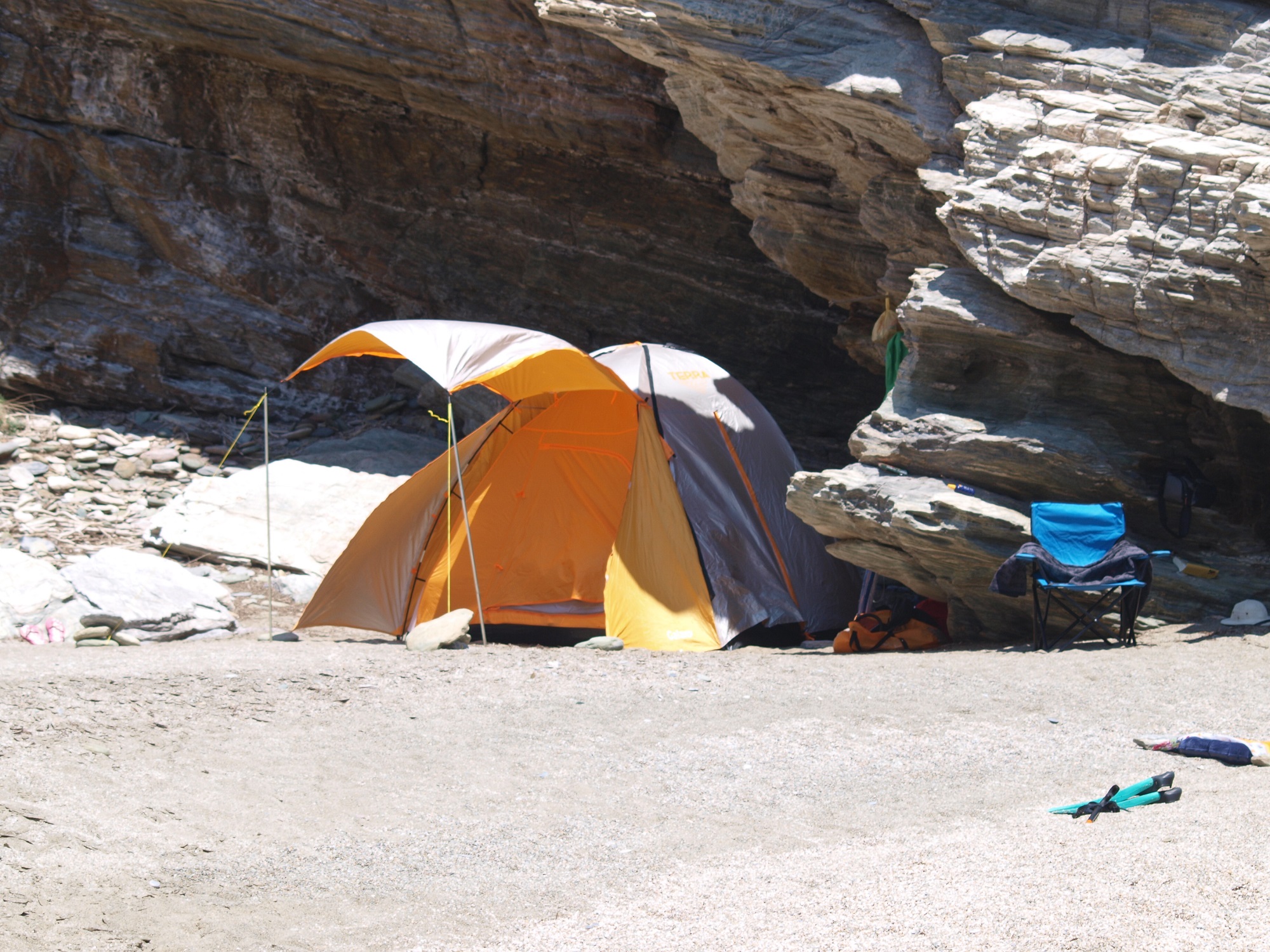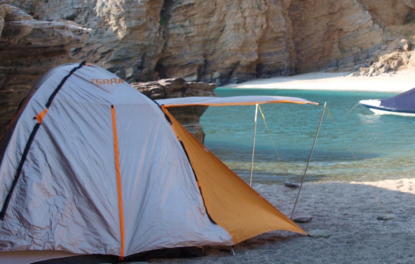 Αυτό πάντως που δεν πληρώνεται με τίποτα και καθιστά το κάμπινγκ ανεπανάληπτο και κάτι που δεν θα ξεχάσεις ποτέ, είναι να μπορείς να ξυπνάς, να κάνεις δυο βήματα και να βουτάς. Ειδικά αν σηκώνεσαι πρωί, γιατί εκείνη την ώρα όλη η φύση ησυχάζει –μόνοι ήχοι είναι τα τζιτζίκια, τα πουλιά και τα θροΐσματα των φύλλων– και η θάλασσα είναι τόσο λάδι, ώστε σκέφτεσαι ότι μπορείς και να την περπατήσεις. Έπειτα, καθώς ανηφορίζει ο ήλιος και ξυπνά τη φύση, οι μυρωδιές και τα αρώματα είναι λες και την υποδέχονται: η θάλασσα μοσχοβολάει και τα βουνά, τα φαράγγια, οι χαράδρες, το χώμα, στέλνουν τις δικές τους ευωδιές. Αν βουτήξεις σε τέτοιες στιγμές, αισθάνεσαι κάπως σαν τον Ροβινσώνα Κρούσο: μόνος στην αγκαλιά του νερού, να αντιλαμβάνεσαι την απεραντοσύνη του.